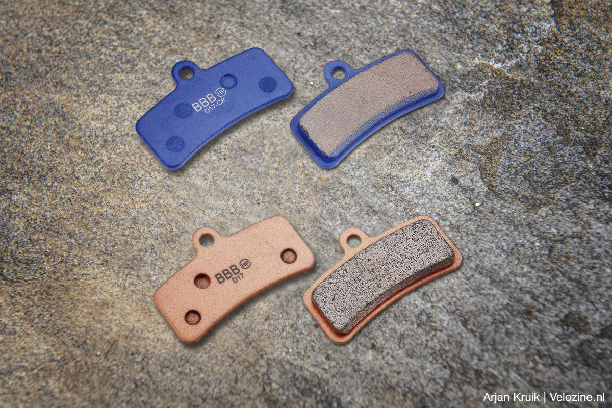 Voor Sram G2-remmen heeft BBB Cycling twee soorten remblokken: DiscStop HP Organic en DiscStop HP Sintered. HP staat daarbij voor High Power, ‘organic’ geeft aan dat er geen metaaldeeltjes in de samenstelling van het remblokje zijn opgenomen, wat bij de ‘sintered’ uitvoering juist wel het geval is. Volgens BBB zijn deze laatste vanwege hun betere hittebestendigheid en hardere, meer slijtvaste compound met name bedoeld voor lange, steile afdalingen, hoge snelheden en slecht weer. De organisch blokken adviseert BBB juist voor meer crosscountry-achtige parkoersen en droog weer.