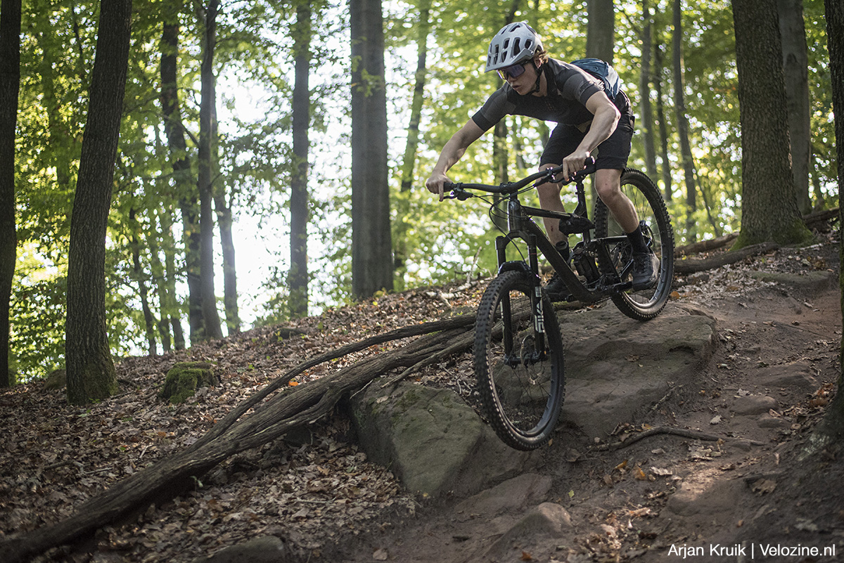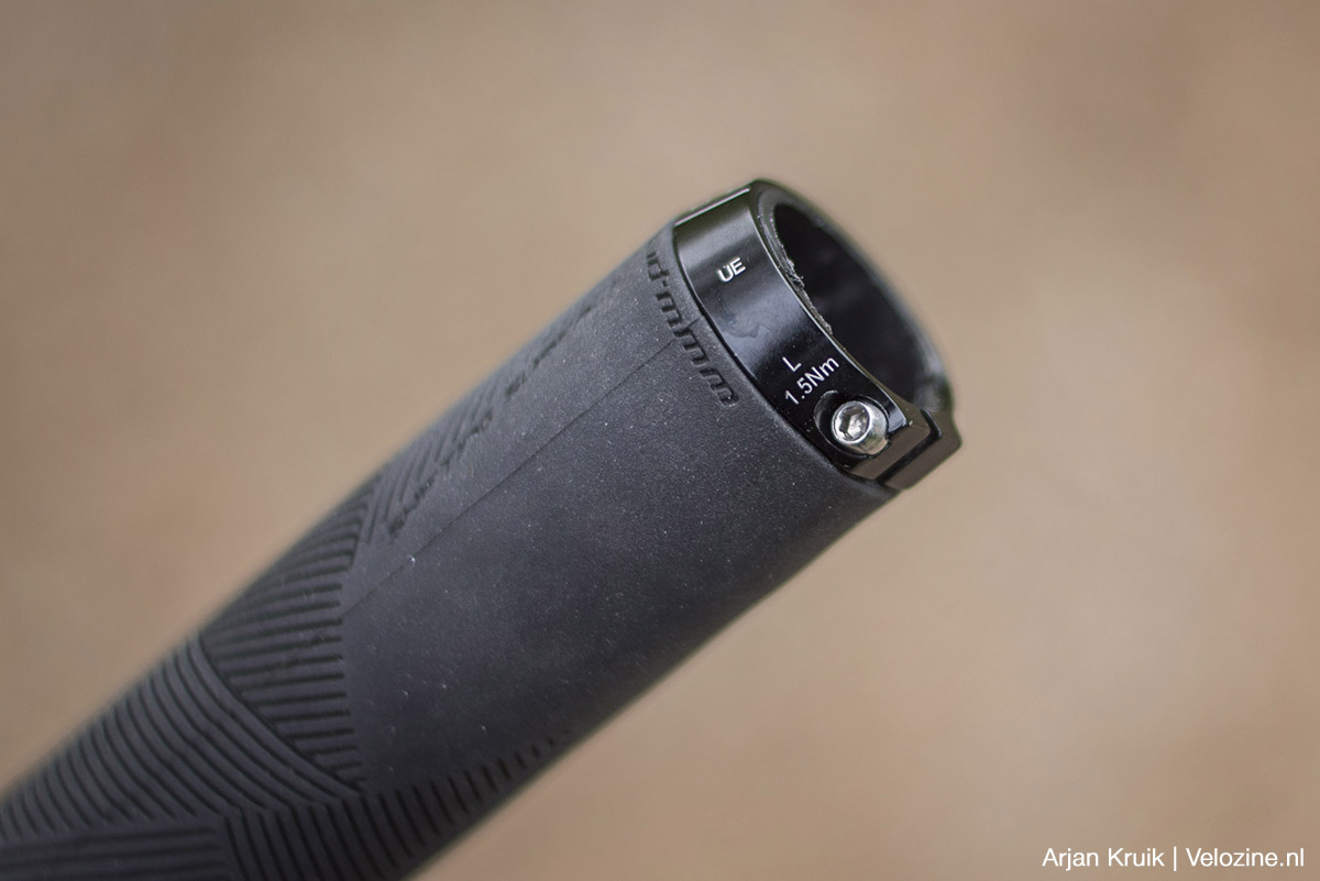 De grip en houvast hebben een dubbele basis: als eerste het vrij zachte, bijna kleverige kraton, een kunstrubber dat zich vanwege z’n elasticiteit, taaiheid en slijtvastheid goed leent voor mountainbikehandvatten. En dan is er nog de verspringende lamellenstructuur die het contactoppervlak met de hand moet vergroten en daarmee de houvast en demping moet optimaliseren. Over demping gesproken: het kunstrubber is aangebracht over een dunne huls van een harde kunststof. Echter, ter hoogte van de buitenkant van de hand zit er een opening in die huls, waardoor die plaats het kunstrubber doorloopt tot óp het stuur. Dat wil zeggen dat er feitelijk méér materiaal zit tussen de hand en het stuur. Ergo: meer demping.