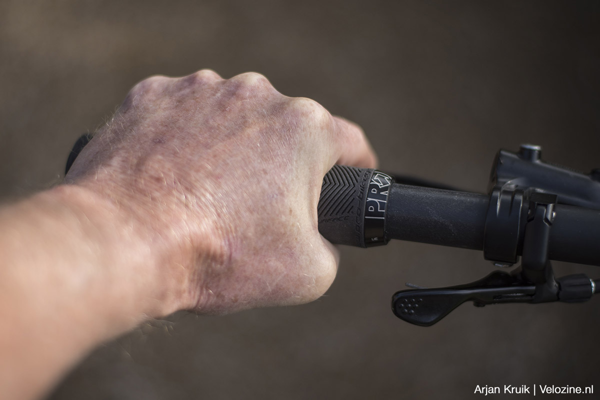 Gezien het ontbreken van allerlei grove ribbels en bobbels op met name de onderkant van de Pro Bikegear Lock-on Sport-handvatten, had ik voorafgaand aan deze test m’n twijfels over de grip en de houvast die ze zouden bieden. De eerlijkheid gebied me te zeggen dat me dat honderd procent is meegevallen. Ja, een ribbel of rand aan de onderkant om daar de vingers omheen te plooien zou ik nog steeds niet erg vinden, maar heel erg gemist heb ik ‘m ook niet. Het ontbreken van zo’n geprononceerde structuur heeft bovendien als voordeel, dat je het handvat onder iedere hoek goed kunt vasthouden.