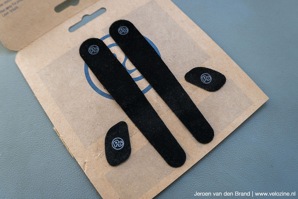 Het Amerikaanse Problem Solvers heeft allerlei accessoires om uh ja, problemen op, aan en rond de fiets op te lossen. Zo ook met de Lever Grippies die ik van distributeur Cosmic Sports eerder dit jaar opgestuurd kreeg. Deze dunne zelfklevende plakkers met een grip-structuur, plak je eenvoudig op je schakel- en remhendels. Een klusje van amper een minuut per greep, al heb ik dat niet exact geklokt. De structuur aan de bovenzijde is het beste te beschrijven als verfijnde klittenband. Het materiaal voelt een beetje als iets tussen kunststof en rubber.