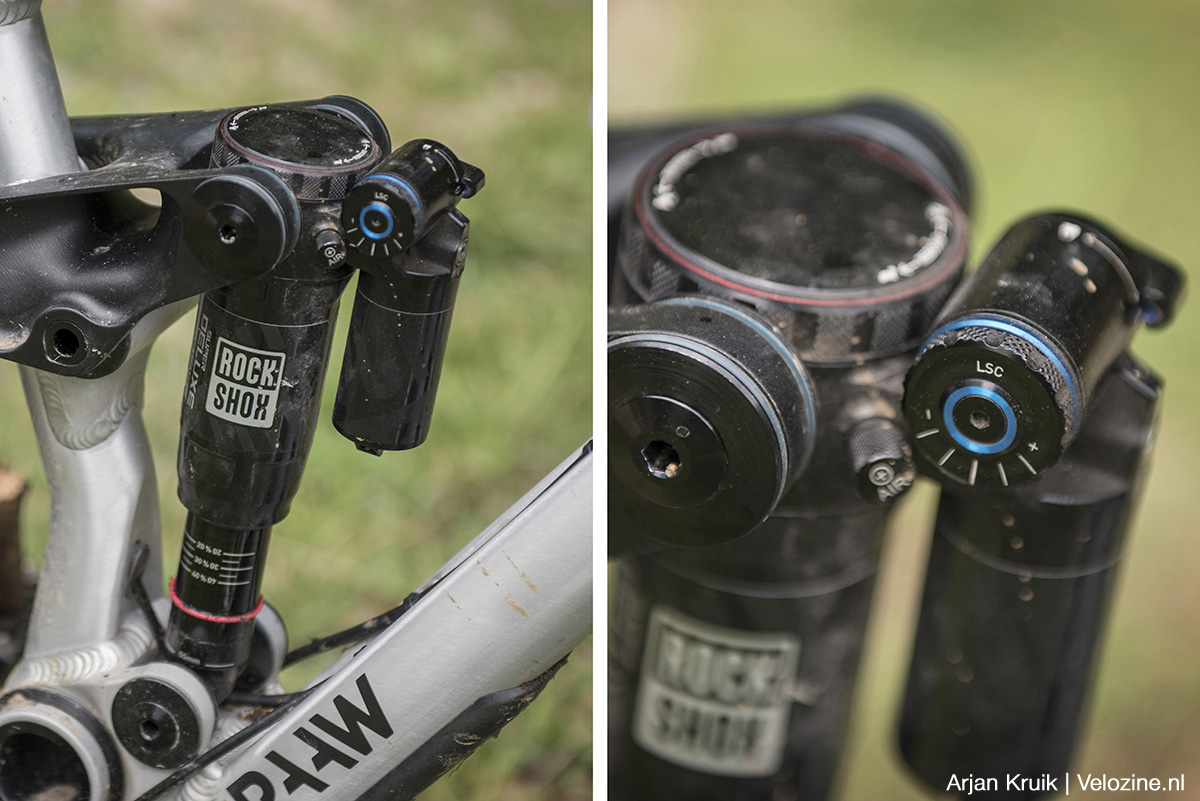 Aan de voorkant het onderdeel waarmee dit hele verhaal begon: de nieuwe RockShox Lyrik. In mijn eerdere review was ik er al erg enthousiast en gedurende de rest van de zomer ben ik alleen maar enthousiaster geworden. In de eerste plaats omdat de 2023 Lyrik Ultimate makkelijk is in te stellen. Okay, je bent nog steeds niet in vijf minuten klaar, maar de knoppen zijn duidelijk en iedere klik doet echt wat. Plus: als je de ene instelling verandert, hoef je niet óók gelijk de andere te veranderen. En dat maakt het instelproces overzichtelijk. Ook de keuze voor de middenpositie als startpunt is een gouden greep. In de tweede plaats overtreft de nieuwe Lyrik Ultimate ook qua rijden z’n voorganger. Veert beter, dempt beter, stuurt beter. Kortom: het is een topvork, die wat mij betreft niet onderdoet voor de veelgeprezen Fox 36 Factory. En dat voor ruim driehonderd euro minder.