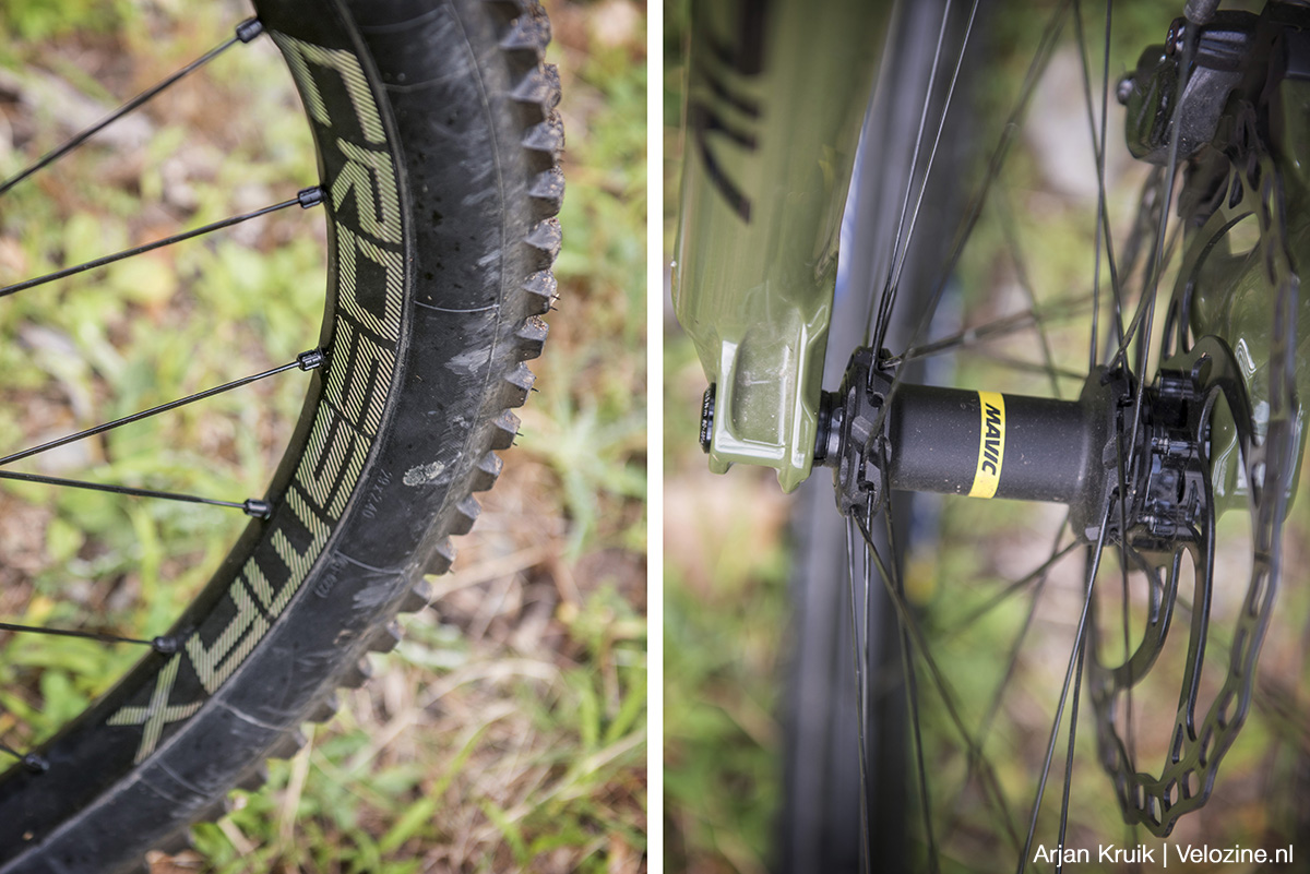 Net als het eerdergenoemde voorblad stonden ook de wielen, een paar Mavic Crossmax XL S-en, al een tijdje ongebruikt in de werkplaats te wachten op een passende bestemming. Die Crossmax XL S is Mavics duurste aluminium trailbikewielset; 850 euro kost-ie. De wielen wegen samen wegen zo’n 1.800 gram, hebben een binnenbreedte van 30 millimeter en zijn – typisch Mavic – zonder velglint al tubeless ready. Waarom geen carbon wielen? Waarom wel? Ik was over Mavics aluminium xc-wielen Crossmax SL S ook al erg enthousiast en dus nieuwsgierig naar hoe deze bredere uitvoering zich zou houden.