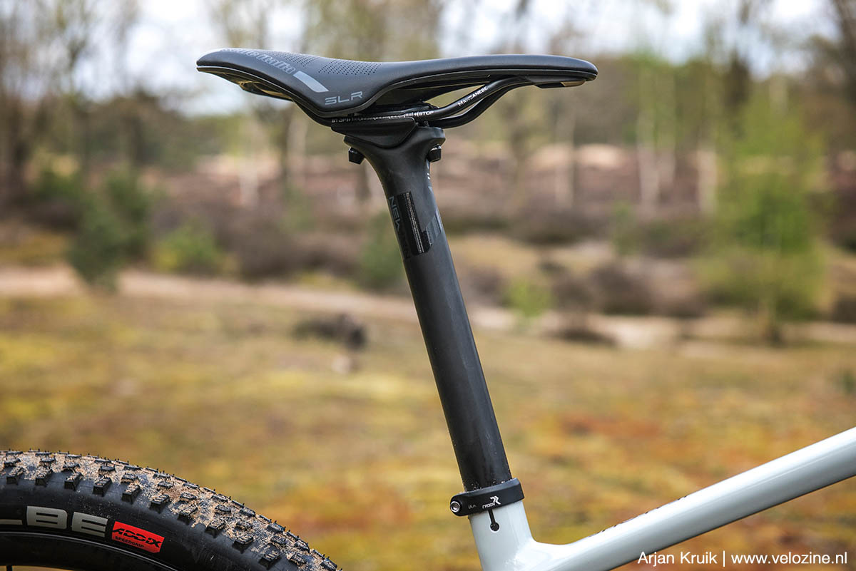 Fijn dat die voorvork zo goed is, want als het om comfort gaat heeft de Radon Jealous CF 10.0 verder niet veel te bieden. En nee, dat ligt niet aan het feit dat ik mijn onverharde kilometers voornamelijk op een xc-fully afleg. Ook voor een hardtail is de Jealous bovengemiddeld hard. Ondanks de afgeplatte staande achtervork komen wortels en remknippen stevig door. En waar een aantal merken op hun race-hardtail een 27,2 mm dunne zadelpen monteert om zo toch nog wat basaal comfort te realiseren, daar zit in de Jealous een carbon exemplaar van 30,9 mm. Ontegenzeglijk een licht en fraai ding, maar niet bepaald gezegend met een meegaand karakter. De euforie die de lichte en directe Jealous in mij oproept komt dus wel met een prijs: de vermoeidheid slaat namelijk eerder toe en het herstellen na een lange rit duurt langer.