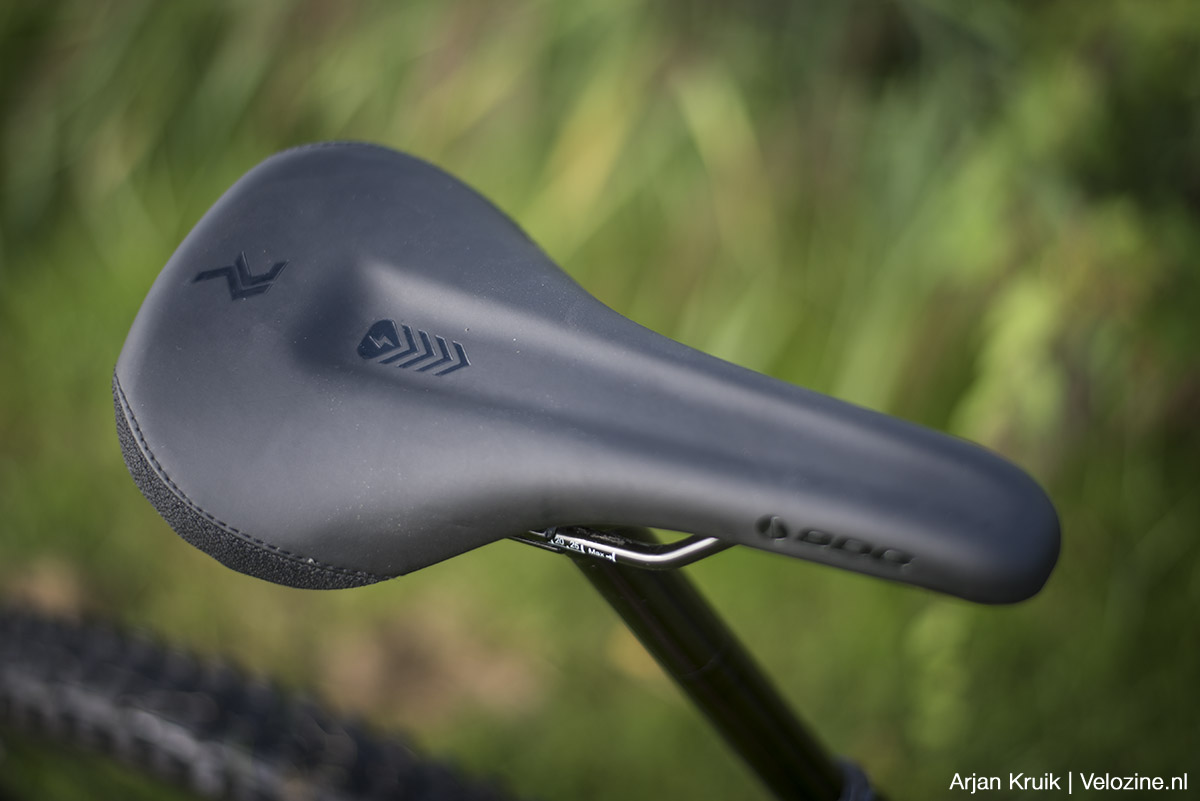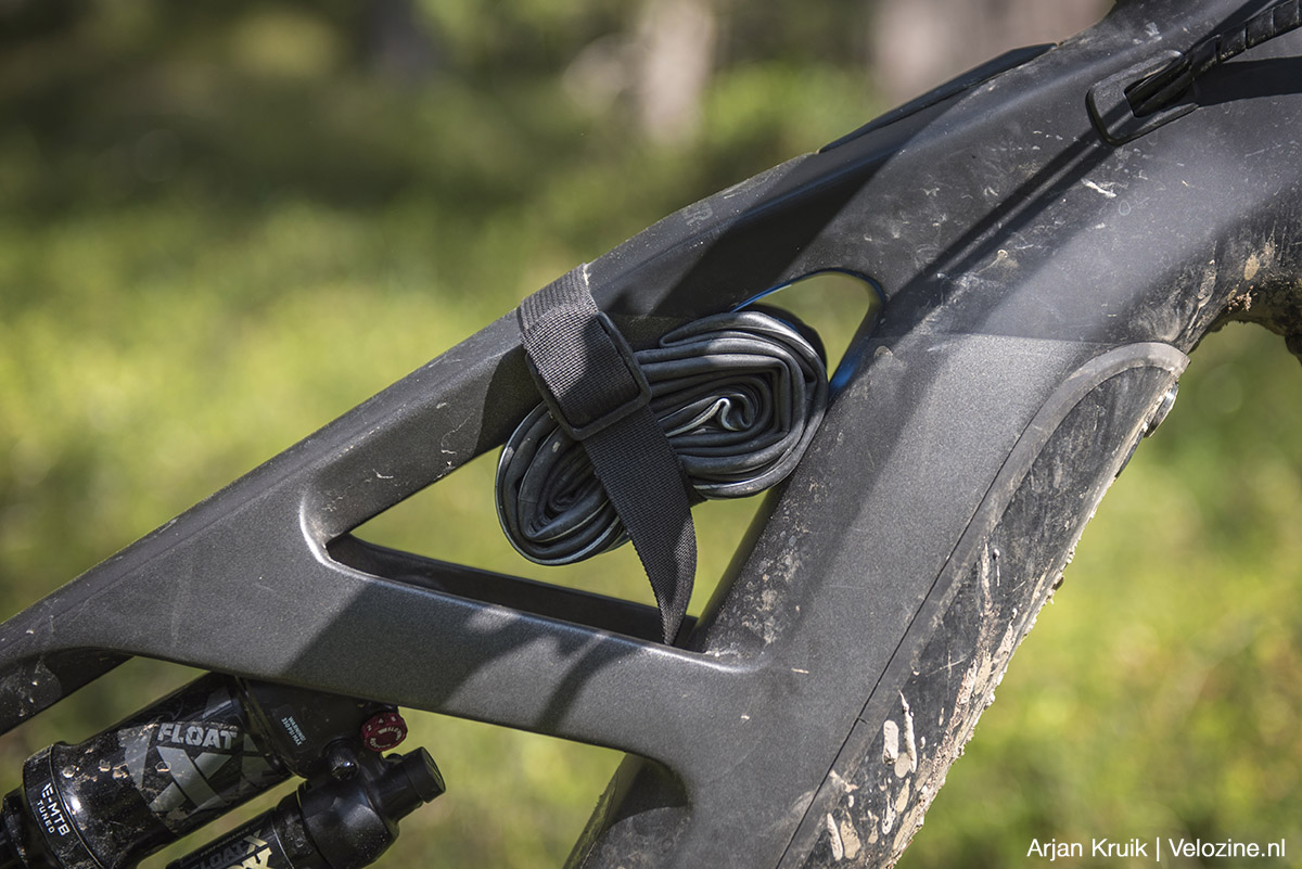 De zitbuis is geknikt, maar heeft desondanks een vrij lange rechte sectie, zodat er plaats is voor verstelbare zadelpennen met redelijk veel drop. De kabels gaan ‘ouderwets’ via twee openingen net achter de balhoofdbuis het frame in. De versnellingskabel loopt vervolgens door de liggende achtervork naar achteren, de remleiding daarentegen is er bovenop geplaatst. Minder strak, maar wel makkelijker als je deze leiding moet vernieuwen. De achterbrug heeft vier draaipunten, inclusief een Horst-link, een een draaipunt net voor/onder de achteras dat in theorie garant staat voor een actieve vering met minimale trapinvloeden. De veerweg bedraagt 140 millimeter achter en 160 millimeter voor.