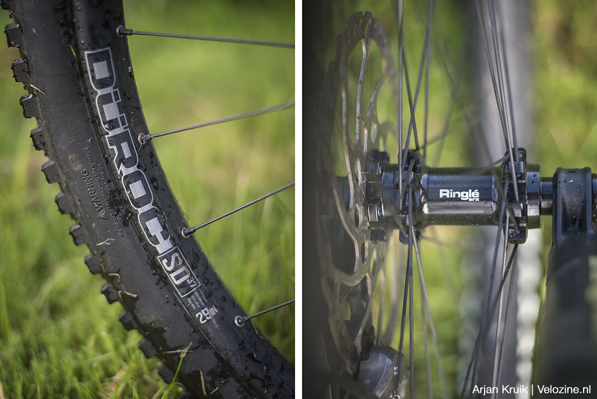 Ook hier neemt Radon geen enkel risico. De Düroc-wielen komen bij Sun Ringlé vandaan. De gebuste aluminium velgen hebben een binnenbreedte van maar liefst 32 millimeter, maar zijn slechts 17 millimeter hoog. Ze zijn met 28 double butted stalen spaken gespaakt rond Sun Ringlé’s eigen -naven. De Dürocs zijn niet de lichtste wielen die je kunt krijgen, maar ze wel supersterk, zo is m’n ervaring met deze wielen op de Render en op een aantal andere testbikes.