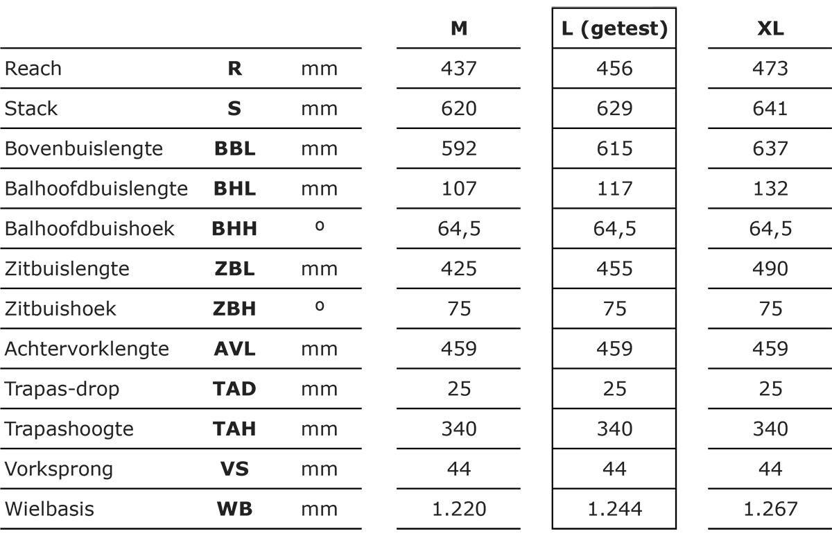 | Gewicht compleet | 24,95 kg (framemaat L) |