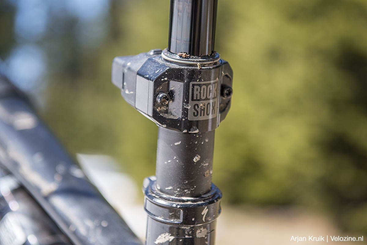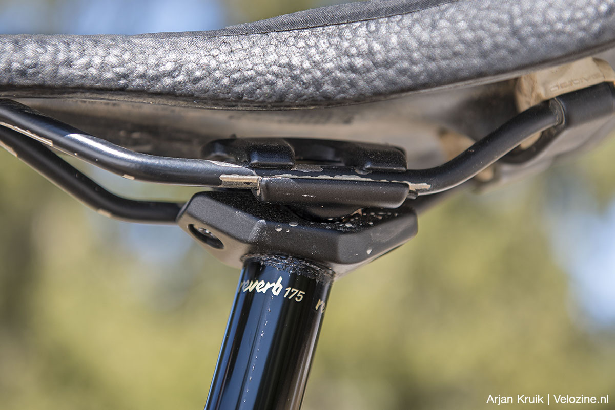Voordat ik je meeneem naar de trails nog even wat andere zaken die me bij de Reverb AXS zijn opgevallen. Allereerst de nieuwe zadepenkop. Nou ja, nieuw: Rockshox is van het best wel slimme, maar vanwege z’n afwijkende werking ietwat lastig te doorgronden zadelverstelsysteem op de oude Reverb AXS, weer terug bij een klassieke kop met twee stelbouten. Beter? Ik vond dat oude systeem eigenlijk ook prima. Maar de nieuwe kop is veel generieker, dat is zeker.