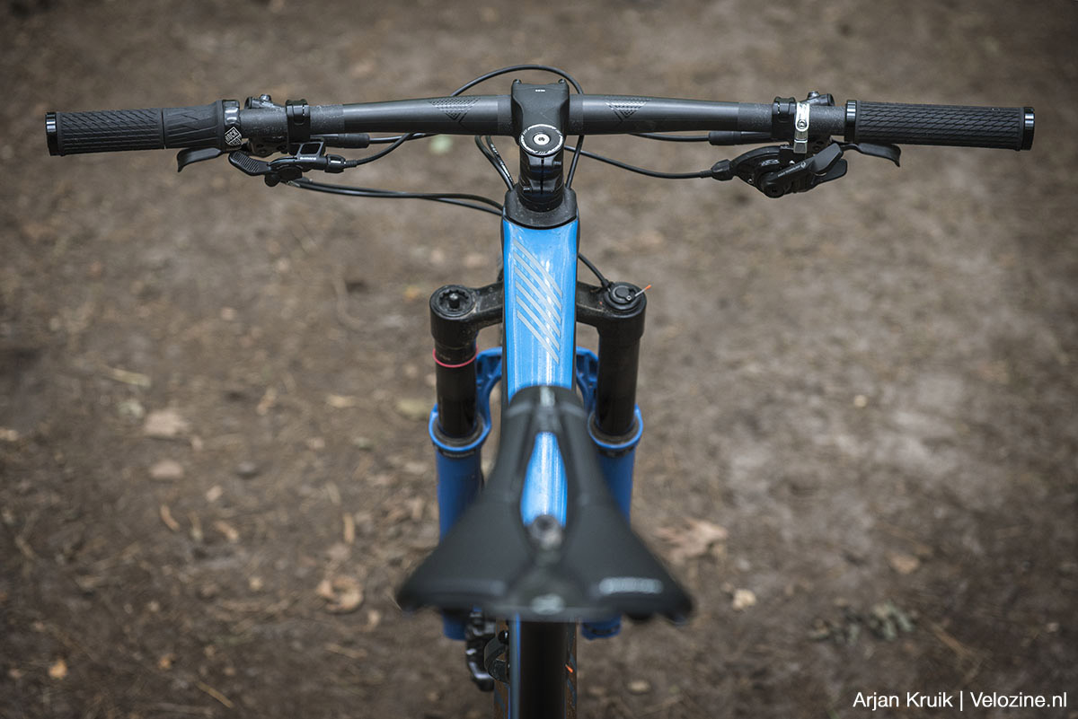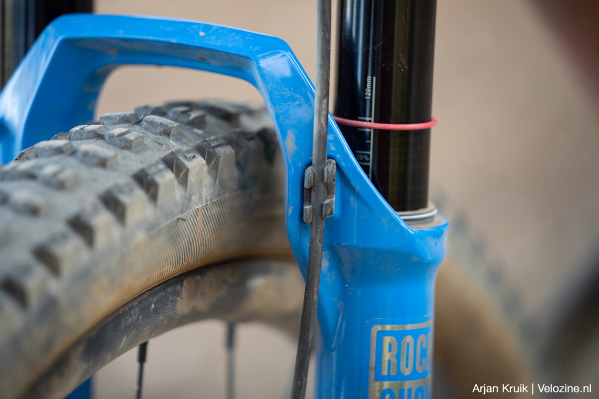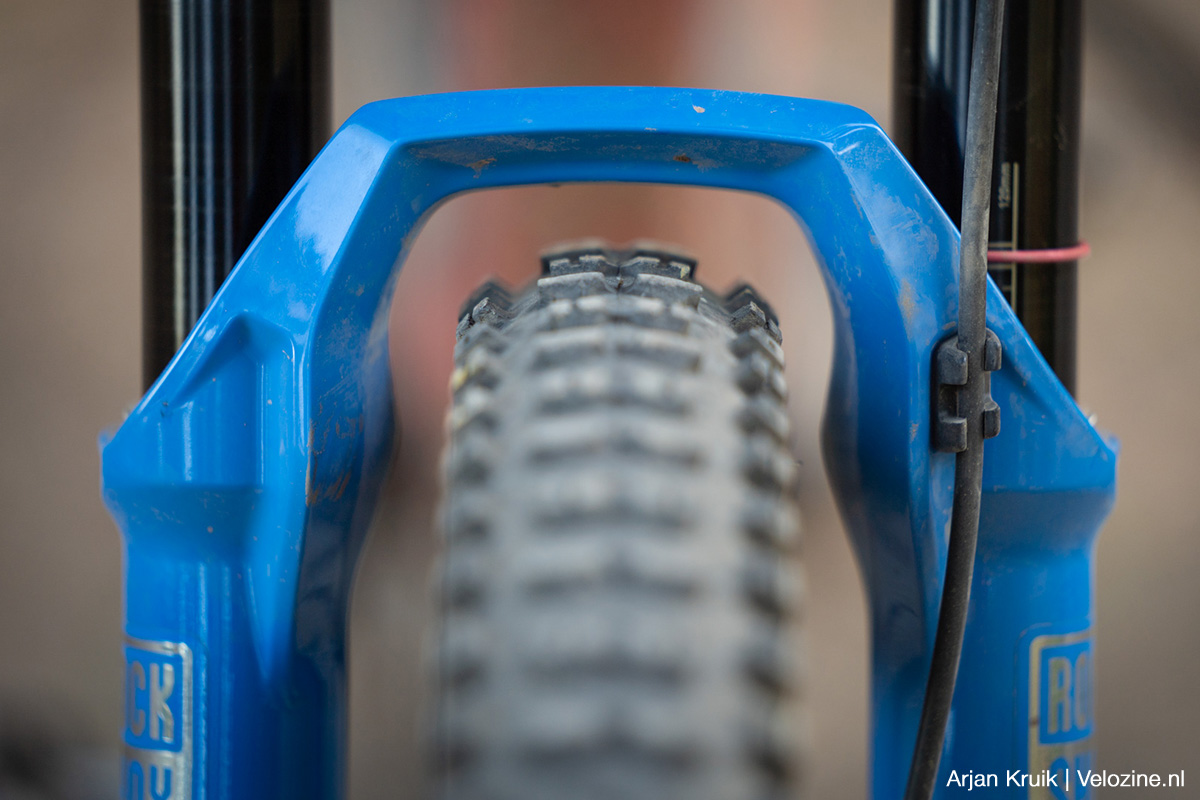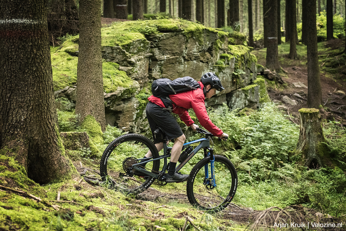 Pas als je het écht gek maakt – denk aan aflopende bochten met meer wortels en stenen dan je lief is – lijkt de vork wat te verharden. De geringe veerweg speelt hier zeker een rol, maar ook van de demper kan je teveel vragen. Die Charger Raceday-demper is zoals gezegd fijn, maar ook erg klein. Dus superkrachten heeft-ie niet en als het écht tekeer gaat dwing je ‘m wel door de knieën. Om misverstanden te voorkomen: op Nederlandse parkoersen gebeurt dit eigenlijk niet, daarvoor zijn onze trails niet ruig en zeker niet lang genoeg.