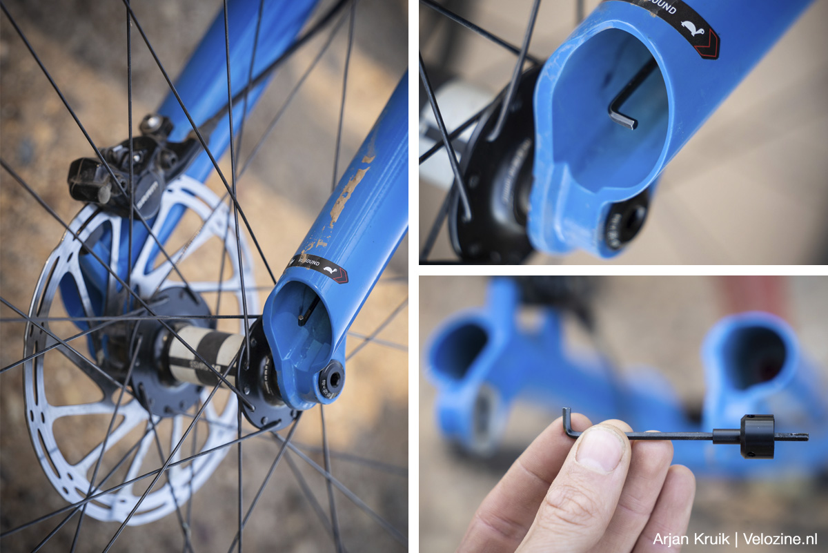 Bij de onderstaande testbikes is deze voorvork in de balhoofdbuis gestoken.