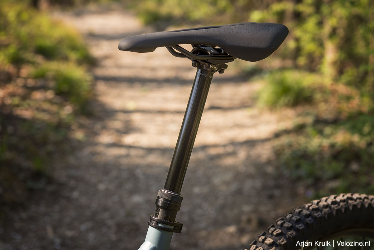 Even verder met de rest van de maten: een liggende achtervork meet 442 millimeter, de trapas staat 28 millimeter lager dan de denkbeeldige lijn door de wielassen en zitbuis meet 470 millimeter. Allemaal moderne waardes, alleen de zitbuis is naar hedendaagse maatstaven aan de lange kant. Sterker: van alle trailbikes die we de afgelopen jaren gereden hebben is die van de Root Miller het langst. De consequentie daarvan kan zijn, dat de 180 millimeter verstelbereik van de af fabriek gemonteerde dropperpost nét iets te lang is, zeker als je benen wat korter zijn dan gemiddeld. Gelukkig kun je het verstelbereik van de zadelpen in stappen van een centimeter reduceren tot minimaal 150 millimeter.