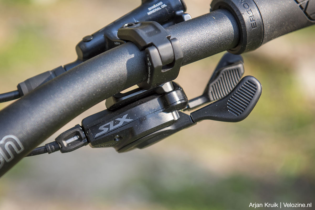 Een meerderheid van de bikes de redactie van Velozine komt binnenrollen is uitgerust met Sram. Niks mis mee, maar dat wil niet zeggen dat Shimano er niet meer toe doet. Vooral hun SLX-transmissie is een miskend value-for-money pareltje. Oké, voor een beetje extra bling doet Rose er nog een XT-derailleurtje bij, maar verder is alles SLX. Net zo goed als XT, hooguit een tikkie zwaarder. Alleen de SLX–shifter doet enigszins onder voor XT. Niet dat deze niet goed werkt – integendeel – maar waar een XT-schakelaar de mogelijkheid biedt vier verzetten in één keer op te schakelen en twee in één keer omlaag, daar is de SLX-variant beperkt tot respectievelijk drie en één.