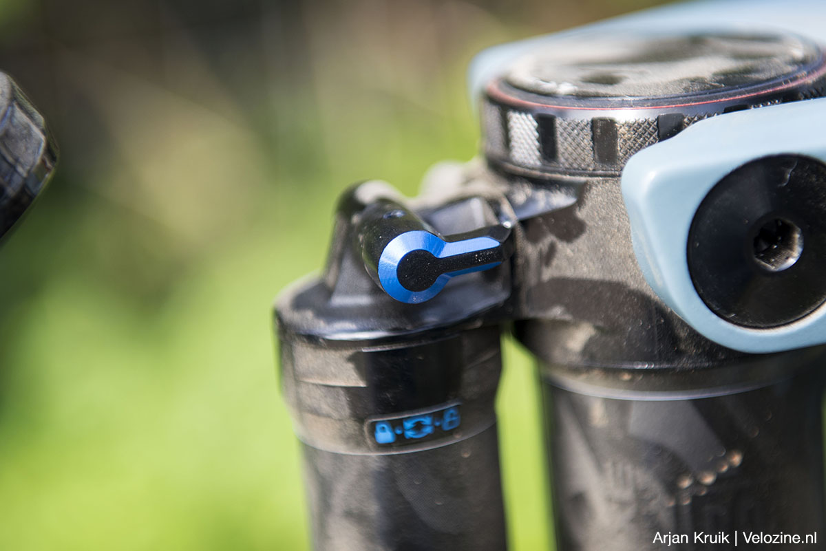 Maar een stelknop om de low-speed-compressiedemping nauwkeuriger in te stellen dan open of dicht ontbreekt. Op zich geen probleem, als je alleen de luchtdruk en rebound instelt kom je al een heel eind. Echter, aangezien ik maar 67 kilo weeg, zou in mijn geval een fabrieksafstelling met iets minder compressiedemping niet verkeerd zijn. De Rockshox Lyrik Select+ die aan de voorkant de 160 millimeter veerweg verzorgt, heeft dat probleem niet. In tegenstelling tot de schokdemper achter, is bij de Charger3-demper zowel de highspeed- als de lowspeed-compressiedemping instelbaar.
