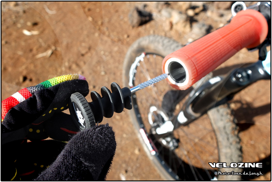 De Sahmurai Sword bandenplugset die we ontvingen is van de tweede generatie. Het eerste nieuwtje daarvan is dat je hem in het stuur draait met de kunststof wokkel in plaats van met een kunststof expander. Die wokkels werken goed: de doppen blijven goed zitten. Controleer wel even de binnendiameter van je stuur: die moet tussen de 17 en 21 mm zijn om te passen.