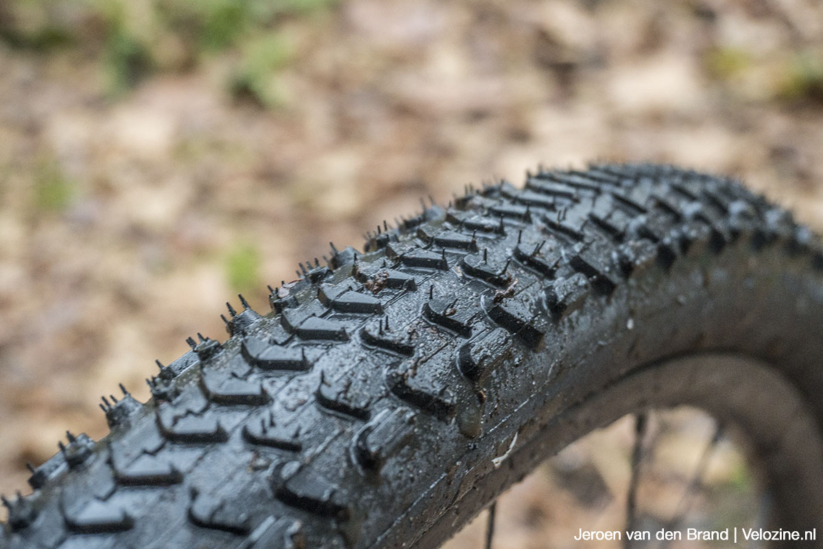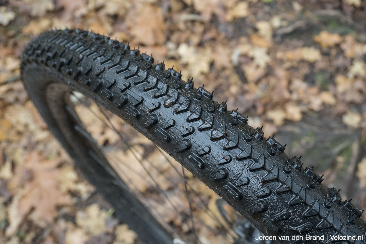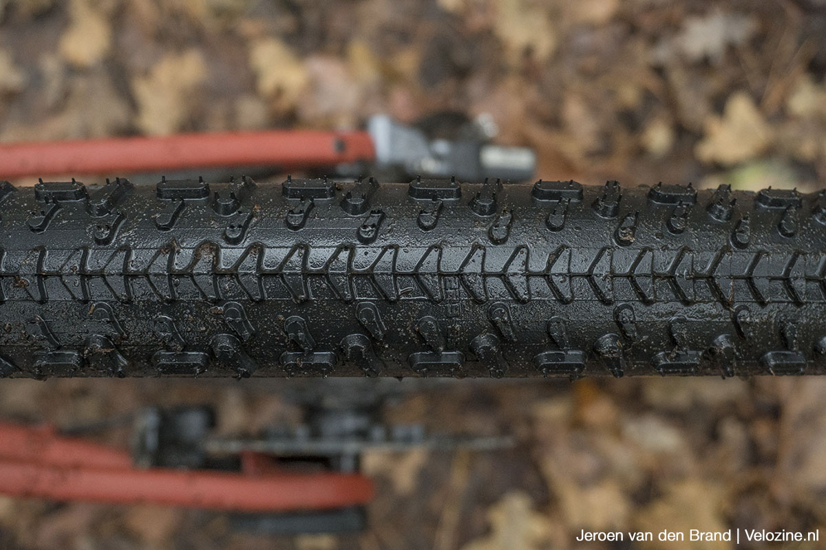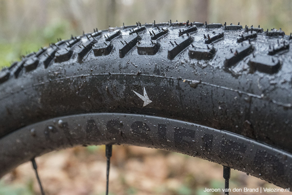 Maar los van sprintjes na een bocht, is snelheid maken lang niet zo’n punt als je zou vermoeden bij dit formaat banden en vooral dit profiel. De nadelen op hardere, goed lopende ondergrond zijn mijns inziens betrekkelijk laag. Zeker gewogen tegen de tractie van het profiel en de demping van het karkas die maakt dat je op losse ondergrond, of waneer het ruig of modderig wordt, beter je snelheid kunt houden dan meer uh gravellige banden.