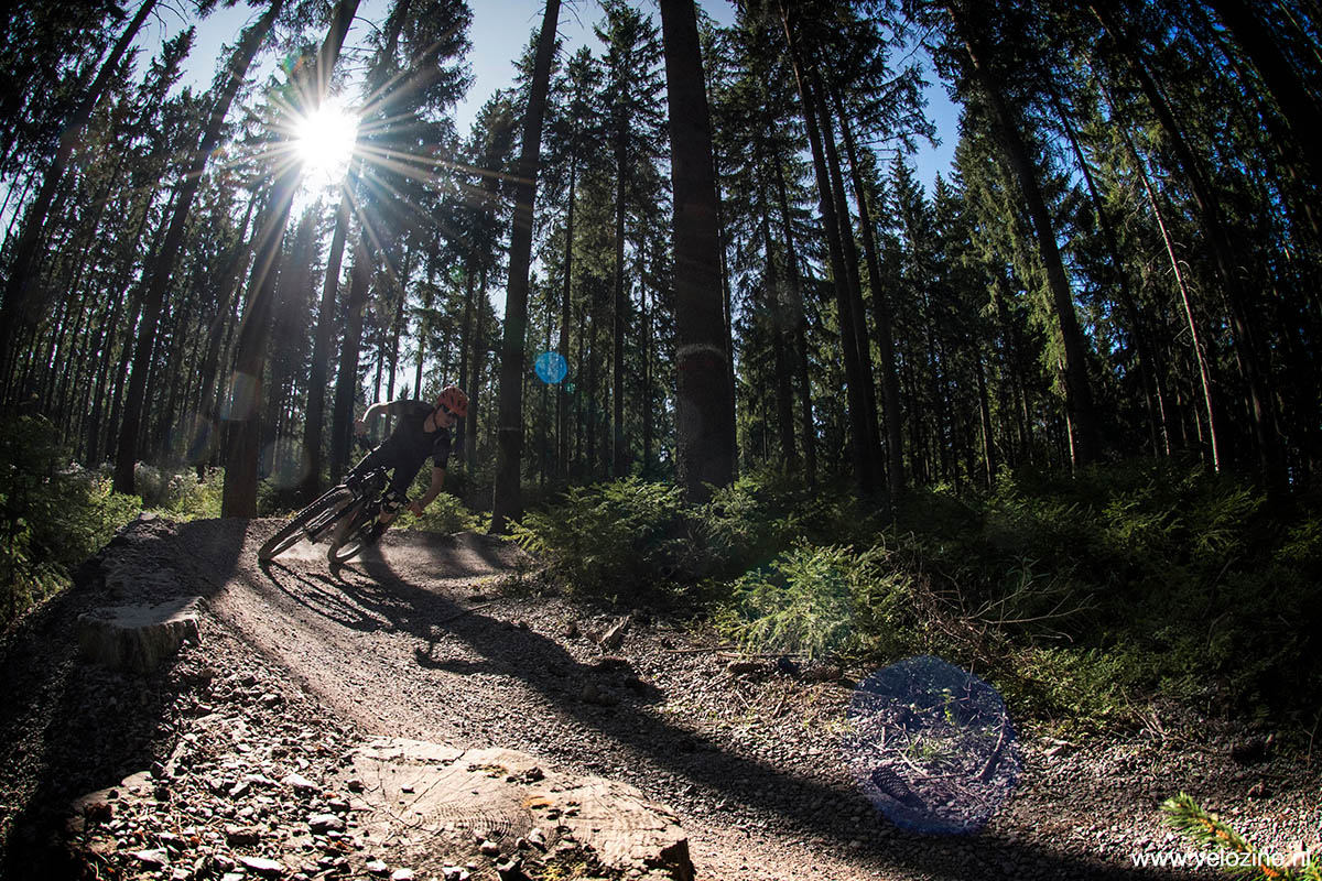 Ik had zelf afgelopen nazomer tijdens een tripje naar Duitsland en Tsjechië een paar Nobbies mee in de Super Trail-constructie. Beide 2.35 inch breed, maar met twee verschillende rubbermengsels. Aan de voorkant de relatief zachte Addix Soft-compound. Om het achterwiel de hardere SpeedGrip-rubbermix. De reden om voor de zwaardere maar sterkere SuperTrail-constructie en twee verschillende compounds te kiezen, was dat ik een zo allround mogelijk set wilde hebben. In het vlakke en onderweg naar boven niet al te zwaar rollend. Tegelijkertijd met voldoende grip, ondersteuning en (stoot)lekbestendigheid om me op ruige paadjes naar beneden niet beperk te voelen.