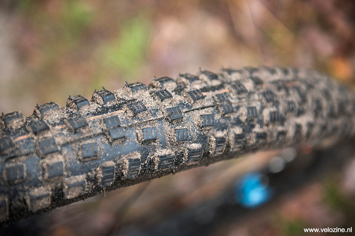 Overigens, grip en tractie komen natuurlijk niet alleen op het conto van het karkas en de rubbersamenstelling, maar ook van de noppen. En ook van de mate, waarin die noppen blubber kunnen lossen. Ook op dat vlak stelt de nieuwe Nobby Nic niet teleur. De afstand tussen de noppen is groot genoeg om te voorkomen dat het profiel dichtloopt. Tot op zekere hoogte natuurlijk, want natte leem en klei krijgen het profiel op den duur wel klein.