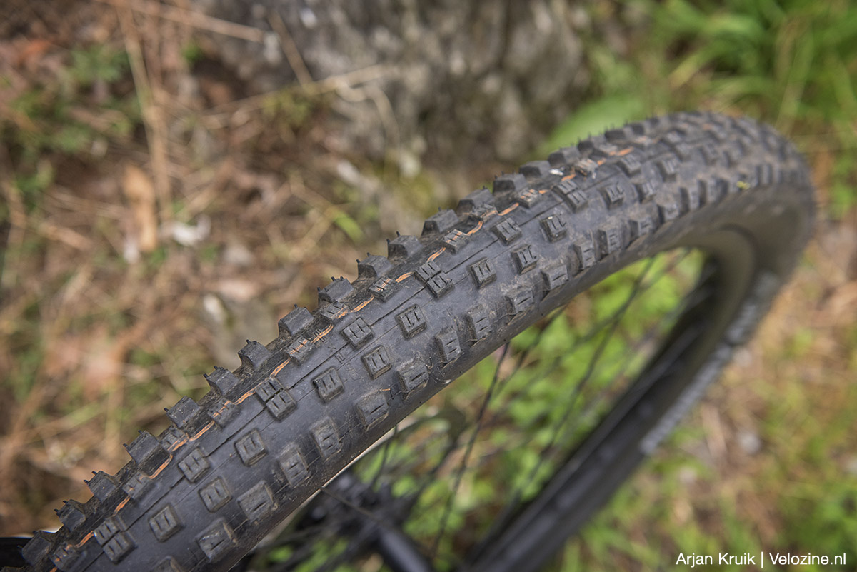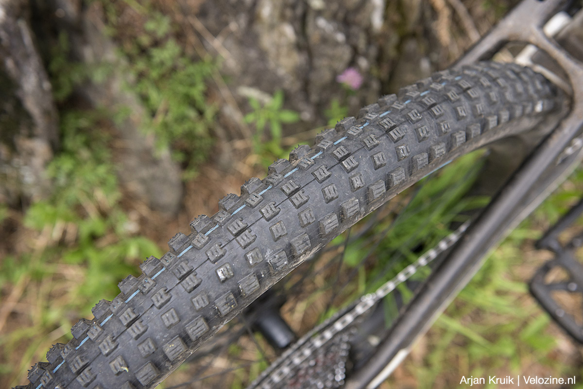Dat wil zeggen; mits gebruikt onder de juiste fiets. Denk aan lichtgewicht trailbikes met een veerweg tussen de 120 en 140 millimeter. Of een zogenaamde downcountry-bike. Of, zoals in deze test, een lichtgewicht e-mountainbike die je ook daadwerkelijk licht wilt houden. Vanwege de relatief geringe rolweerstand brengen de Wicked Will en Nobby Nic me vlot naar boven. Terwijl het karkas, het profiel en de rubbersamenstelling in de afdaling geen steken laten vallen. Oprecht niet; ik heb me tijdens de afdalingen op geen enkele manier ingehouden – niet qua lijnkeuze en niet qua snelheid – en de banden hebben dat probleemloos doorstaan.Eén kanttekening: als de Wicked Will versleten is, vervang ik ‘m wel voor een uitvoering met het stuggere Trail-karkas. Die karkasvariant weegt weliswaar zo’n honderd gram meer, maar biedt de mogelijkheid de druk nog wat verder te laten zakken, zonder dat ik angst hoef te hebben voor lekrijden. Plus: zo’n stugger karkas biedt meer ondersteuning in snelle bochten. Aan de voorkant mag het Super Ground-karkas wat mij betreft blijven. Ik vind het gevoel dat de band zich goed plooit naar de ondergrond persoonlijk erg prettig.