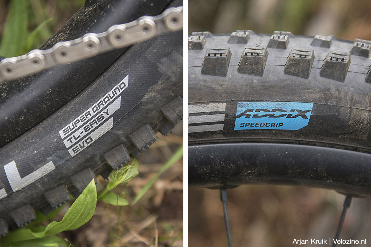 Het setje rolt verrassend vlot, voor zover dat bij een e-mountainbike een belangrijk punt is. Ik denk zelf van wel, want hoe lichter een band rolt, hoe verder je op een acculading komt. En dat licht rollende banden op een spierfiets fijn zijn hoef ik je natuurlijk niet uit te leggen. Naast de rubbersamenstelling en het noppenpatroon doet ook het relatief soepele Super Ground-karkas op dit vlak een duit in het zakje.