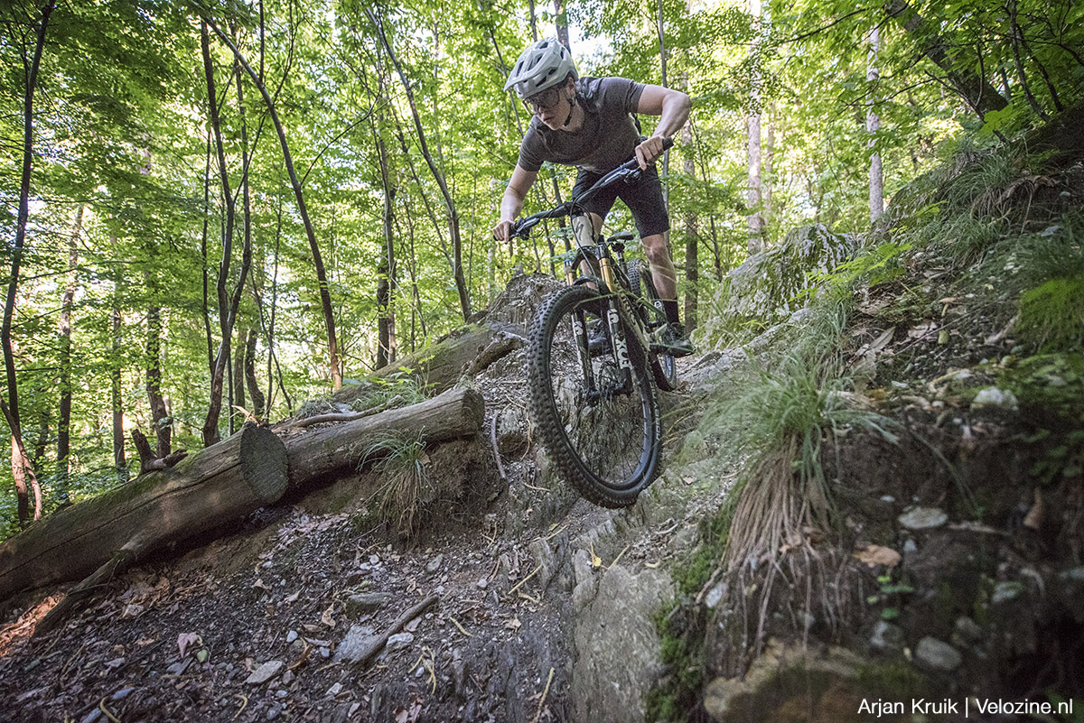 Maar het Super Ground-karkas heeft meer voordelen. Vooral in langzame, technische secties, zowel omhoog als omlaag, ervaar ik veel grip en controle. Alleen bij volle-bak-afdalingen over grove keienpaden valt me op dat het karkas van met name de achterband, de Wicked Will dus, misschien iets stugger zou mogen zijn, om meer tegendruk te genereren. Vergeet niet dat de Specialized Turbo Levo SL weliswaar veel lichter dan een full-power e-mountainbike, maar altijd nog zwaarder dan motorloze trailbikes. Toch heb ik geen enkele keer een stootlek gehad, ondanks een paar akoestische indicaties van velg-op-rots-contact.