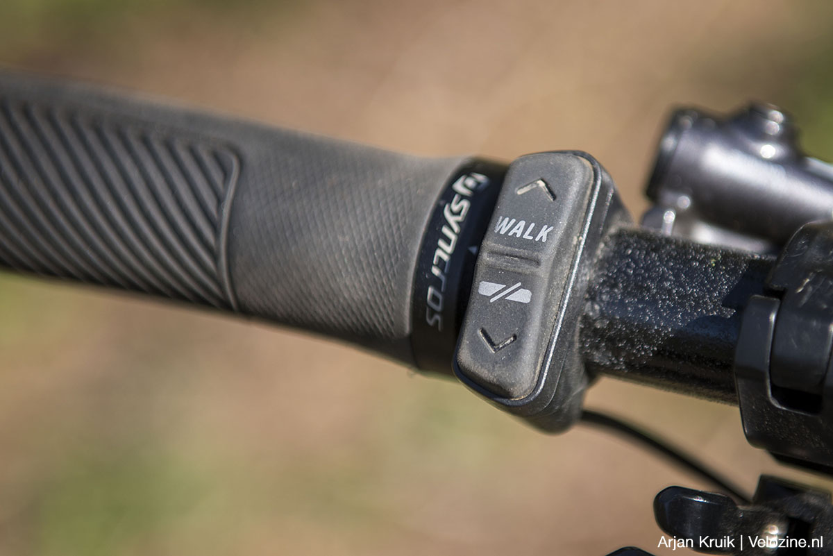 Tot slot is er de ‘gesloten’ stand, waarbij het systeem nagenoeg op slot gaat, met een blow-off voor het geval je een diepe kuil mocht raken. Deze stand, waarbij de veerweg achter eveneens niet meer dan 90 millimeter bedraagt, is bedoeld voor (klim)secties met asfalt of fijn grind.