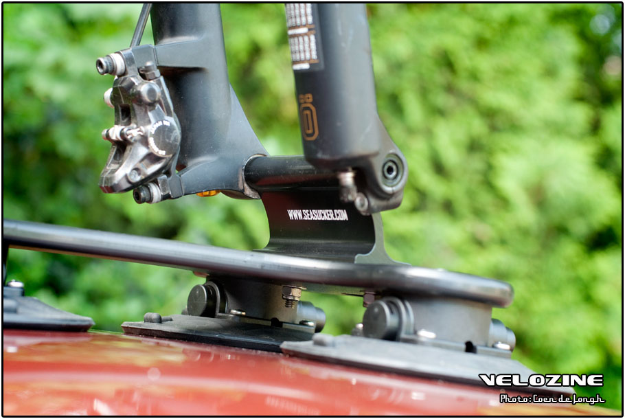 Montage van de Seasucker Talon dakdrager is eenvoudig: je legt ze op de auto en je trekt de zuignappen vacuüm op het plaatwerk of glas met de hieronder getoonde ‘vingerpompjes’. De eerste keer met de zuignapdrager op het dak is daarna toch wel spannend. Er zijn legio video’s te vinden van de PR afdeling van Seasucker, waarbij als een hooligan in de auto gereden wordt. Met je eigen, dure fiets op het dak, is het toch een ander verhaal. Zoals in bovenstaande video te zien, is er echter geen vuiltje aan de lucht. Op de snelweg, offroad, over drempels, het kan allemaal gewoon met de Seasucker Talon dakdrager. Eén keer kwam ik terug thuis en ontdekte dat de houder voor het achterwiel los gegaan was. Dat wil zeggen: het pompstaafje gaf aan dat er geen goede vacuüm seal meer was (waarschijnlijk doordat ik hem in stoffige omstandigheden erop gezet had). De fiets was echter totaal niet verschoven en ik kon de mount er ook niet zomaar aftrekken.