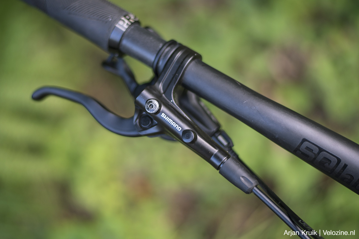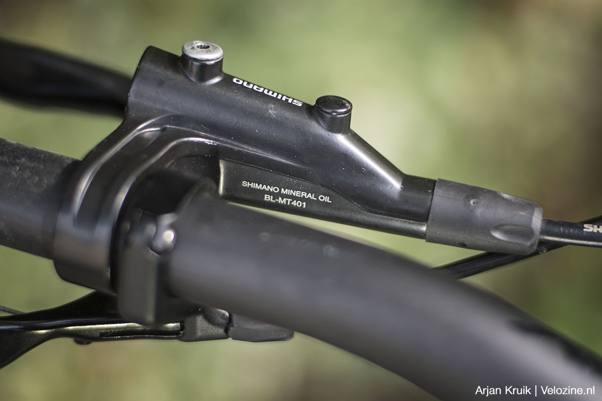 Omdat de slag die de remhendel maakt vrij klein is moet je wel de positie van de hendel ten opzichte van het handvat goed afstellen. Dat kan met een klein inbusboutje aan de binnenkant van de remgreep. Gepiel? Een beetje wel ja, maar nogmaals: we hebben het hier over budget-remmen. Shimano heeft uiteraard ook remmen in z’n collectie waarbij de reikwijdte van de remgreep zonder gereedschap is in te stellen, maar de goedkoopste daarvan, de SLX-rem, kost minstens twee keer zoveel als ‘onze’ BR-MT420.