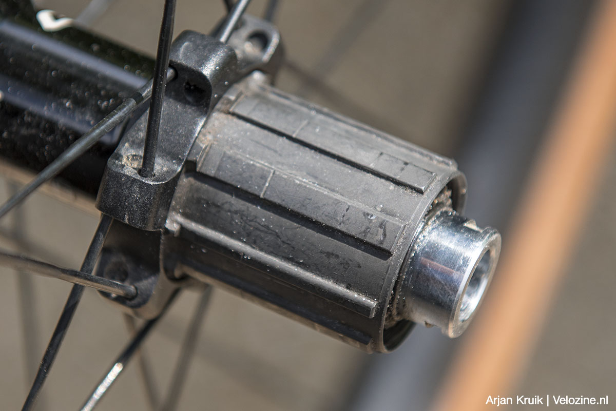 Waar bij veel naven de lagers niet of zeer lastig schoon zijn te maken en het vrijloopmechanisme juist makkelijk, daar doet Shimano het andersom. De Shimano-body en de binnen liggende lagers en pallen vormen namelijk een afgesloten geheel. Voordeel: je hoeft de vrijloop niet te smeren. Nadeel: als-ie stuk is of versleten moet je een nieuwe kopen. Plus: je trekt ‘m er in tegenstelling tot de meeste andere naven niet zonder gereedschap af. Je hebt een inbus nummer 15 nodig om de holle bout los te schroeven die de body met de naaf verbindt. Dat is ook zo’n karakteristieke Shimano-constructie: naaf en body vormen feitelijk één constructief geheel. Hierdoor kan Shimano de lagers maximaal aan de uiteinden positioneren, wat voor de verdeling van de krachten een voordeel is.