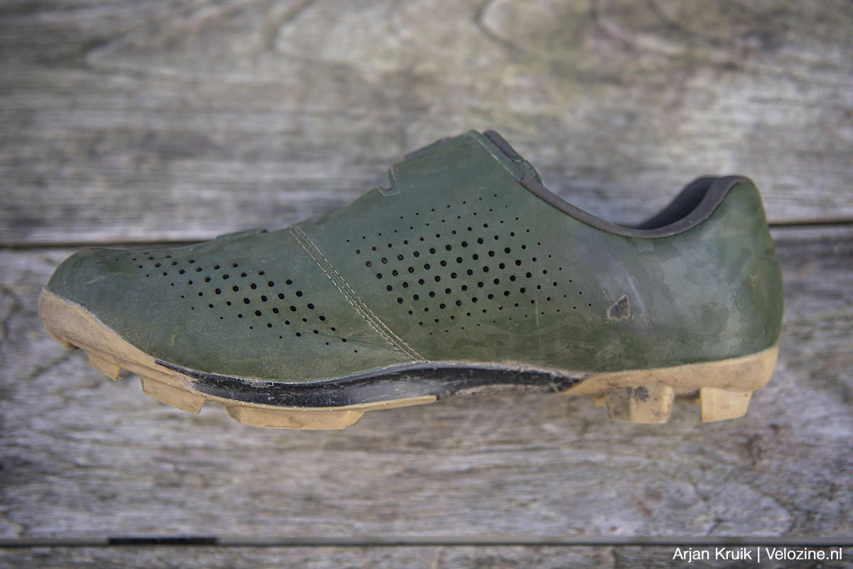 Als gravelen een mix is van wielrennen en mountainbiken, dan is Shimano’s gravelschoen RX6 een combinatie van een racefietsschoen en een mountainbikeschoen. In die hybride mix is de offroad-afkomst dominant, maar niet tè. Zo is, in tegenstelling tot Shimano’s mountainbikeschoenen, een flink deel van de tussenzool niet bedekt met een laagje rubber. Daarnaast zijn de noppen zelf eveneens niet van rubber, maar van het lichtere polyurethaan. Maar de manier waarop deze schoenen lopen komt wel heel erg dicht in de buurt van die van mountainbikeschoenen. En de robuustheid is tevens des mountainbikes. Tenminste, dat kan je toch wel zeggen na ruim drieduizend probleemloze kilometers.
