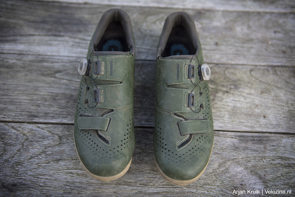 De RX6 is Shimano’s middenklasse gravelschoen. Nou zegt die kwalificatie niet zo veel, want momenteel heeft Shimano maar twee échte gravelschoenen in z’n collectie. De door mij gereden RX6 van 179,95 euro en het eerder door collega Arjan geteste topmodel RX8, dat 239,95 euro kost. Is de RX8 volledig ontworpen om een zo laag mogelijk gewicht en een maximale efficiëntie te realiseren, de RX6 is meer gemaakt met comfort in gedachten. Zo is de tussenzool minder stijf, de polstering minder dun en het gewicht hoger.