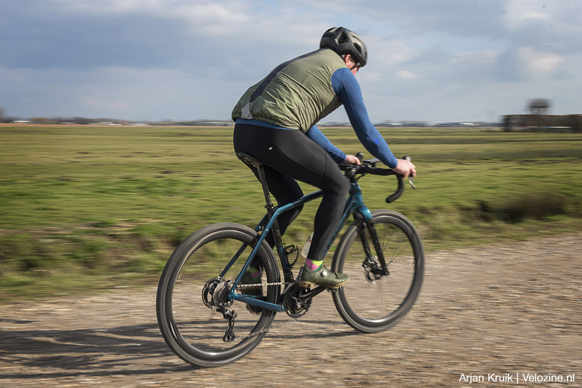 Ondanks dat de RX6-gravelschoenen met een stijfheidsindex van acht op een schaal van twaalf minder stijf zijn dan de RX8, die een waarde van tien heeft, zijn ze wat mij betreft stijf genoeg. Of laat ik het zo zeggen: ik heb geen moment het gevoel gehad dat er trapenergie verloren gaat in de buiging van de zool. Integendeel. De zool is dermate stijf, dat de pedaalomwentelingen heel effectief aanvoelen. Dat heeft overigens niet alleen te maken met de zool zelf, maar ook met de pasvorm en de vormvastheid van het bovenwerk. De voet zit dermate goed gefixeerd in de schoen, dat van schuiven of onnodig bewegen geen sprake is.
