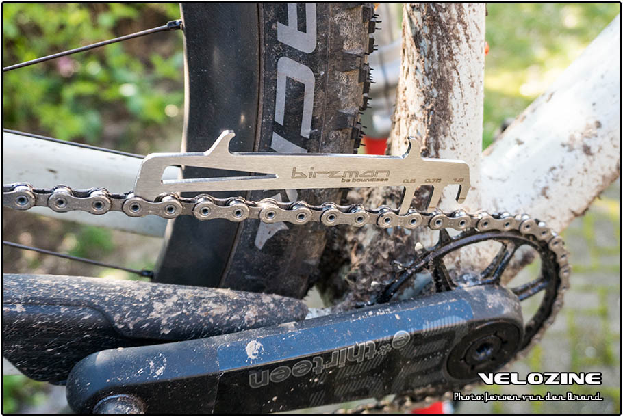 Mocht je de ketting moeten vervangen, dan kan dat met de zeer robuuste Damselfly kettingpons. En dat is er eentje die goed doordacht is; hij kan zonder dat je zelf wat moet verstellen, veschillende kettingbreedtes aan. Het geleideblokje dat tussen de schalmen de ketting op zijn plek houdt, is namelijk verend opgehangen. Je hangt simpelweg de ketting over het blokje en je duwt bij het ponzen de ketting altijd tegen het vaste deel van de pons. Slim!