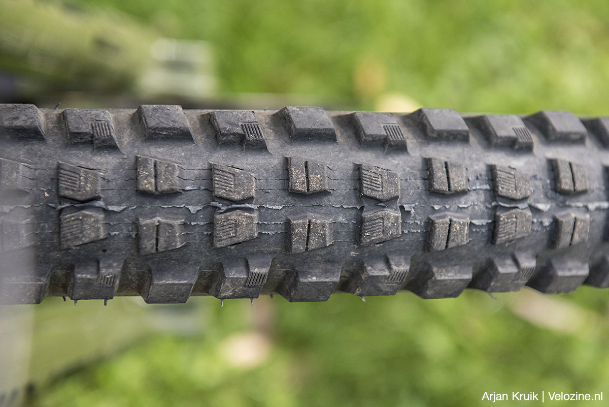 Natuurlijk, op egale, harde ondergronden voel ik de vibratie van de noppen van met name de Butcher doordringen tot m’n handen, maar die sensatie is bij deze voorband subtieler dan bij voorbeeld Schwalbe’s Magic Mary. In technische klimmetjes biedt de Eliminator aan de achterkant volop tractie. Een zachtere compound zou uiteraard nóg meer grip genereren, maar gecombineerd met het effectieve profiel en het relatief soepele karkas vindt de Eliminator ondanks het relatief harde T7-rubber eigenlijk overal voldoende houvast. Plus: achterbanden met zacht rubber slijten als een malle. En van slijtage heeft de T7 Eliminator maar weinig last.