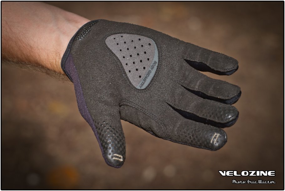 Specialized’s Grail Long Finger Glove is een dunne, lichte set handschoenen met… lange vingers. Ze zijn gemaakt van een dunne stretch-stof bovenop en kunstleer aan de zijde van de handpalm. Het Body Geometry-gedeelte van deze handschoen bestaat uit een gel insert in de handpalm die de zenuwen moet verlichten. Deze is niet erg dik of groot en is ontworpen om de holte in de handpalm nét op te vullen. Ik kan me handschoenen herinneren waarbij de gel inserts over een veel breder deel van de handpalm gepositioneerd waren. Ik had daar altijd gemengde gevoelens bij, letterlijk. De zenuwen ín de handpalm voelden misschien minder druk; de druk nam juist toe aan de randen van de handpalm, precies daar waar de handen op het stuur drukken. Het stuurgevoel verdween daarbij ook téveel. Zoiets is en blijft natuurlijk erg persoonlijk.