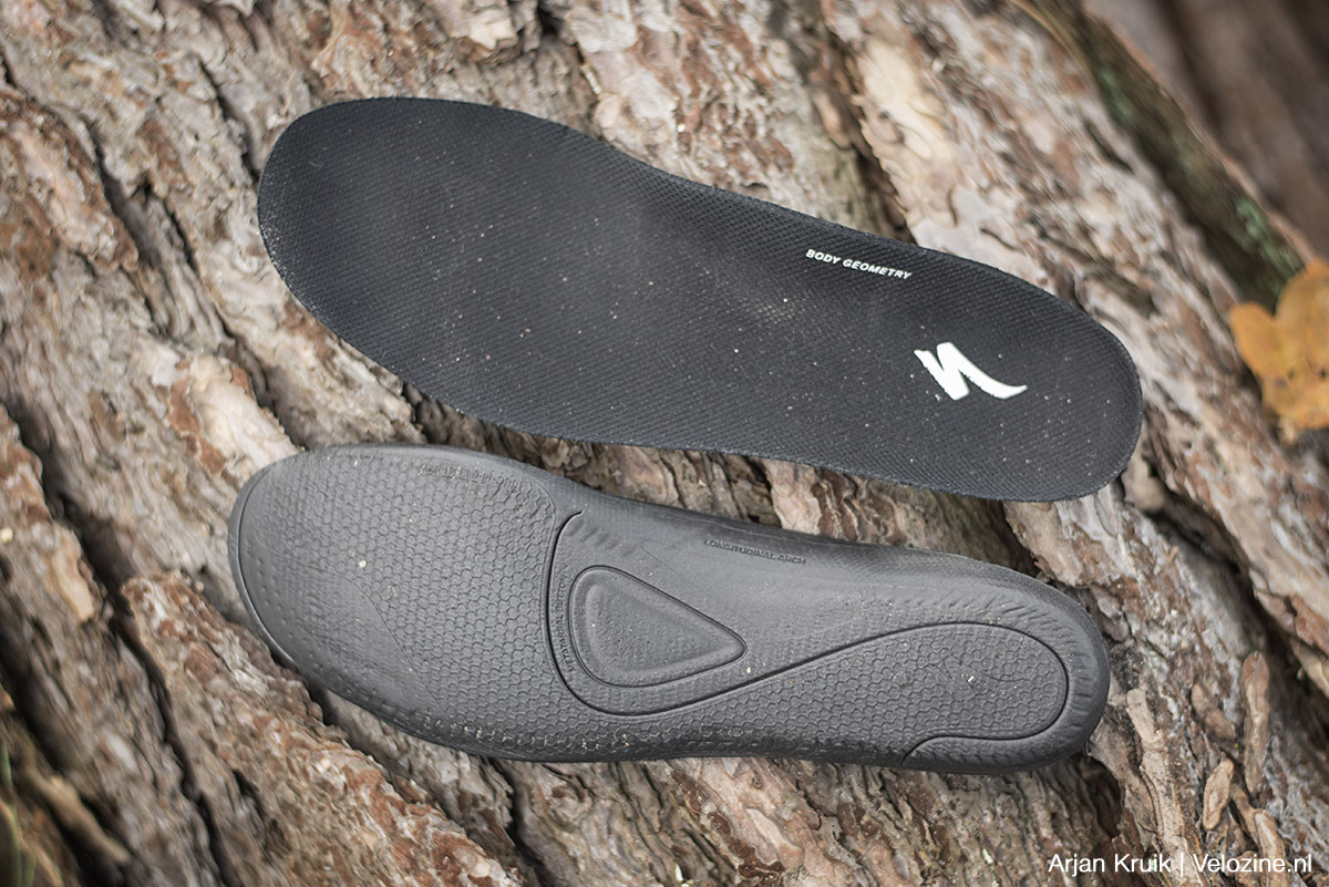 De inlegzolen zijn nogal basic. Heb je daar geen problemen mee, dan moet je ze lekker laten zitten. Maar heb je behoefte aan meer ondersteuning, dan kan een paar betere inlegzolen geen kwaad. Ik draag zelf meestal Superfeets, maar onder de naam Body Geometry heeft ook Specialized prima inlegzolen in huis. Voor het geld hoef je het niet te laten; voor 30 euro haal je een paar BG-zolen in huis.