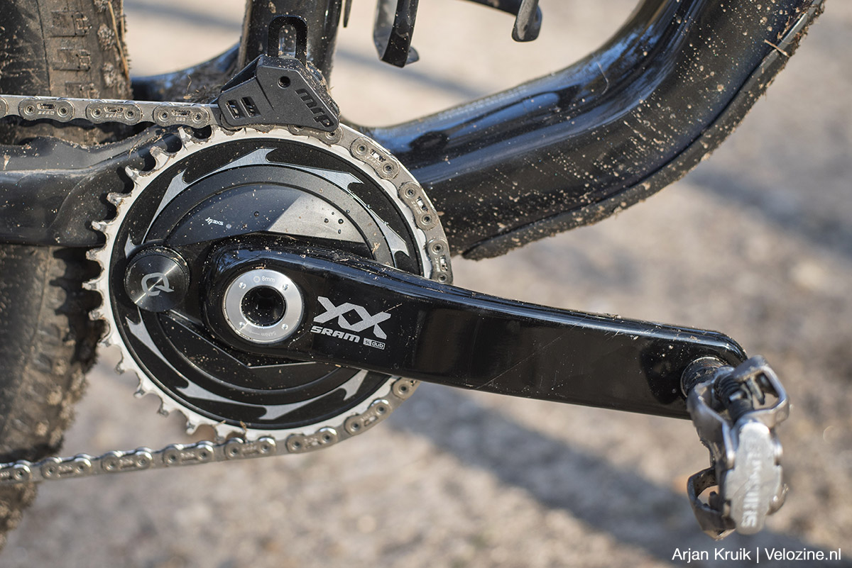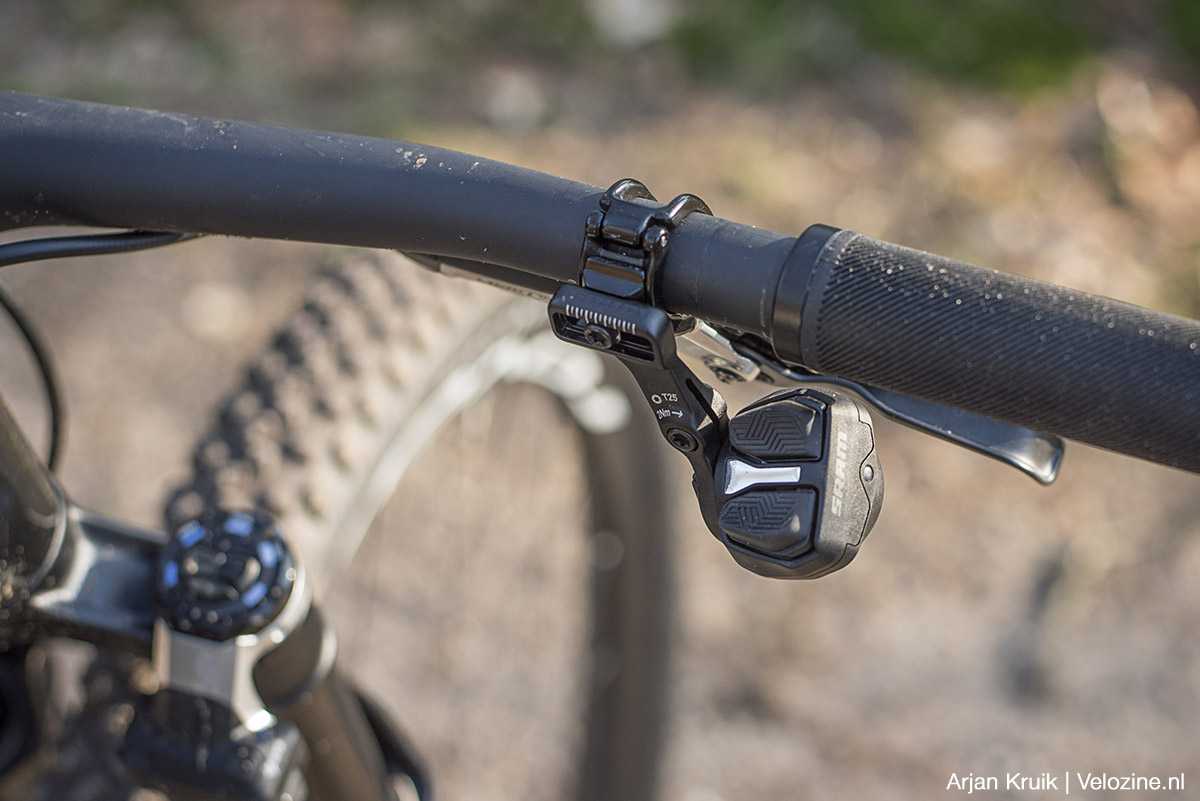 Wie 14.500 euro voor een fiets neertelt, verwacht natuurlijk wel wat. Maar Specialized stelt niet teleur: de S-Works Epic 8 is uitgerust met Srams XX SL Eagle Transmission. Dat is wat mij betreft toch wel de referentie. Naast de aandrijving verzorgt Sram met een paar Level Ultimate’s ook de remmerij. En geen laffe tweezuigerremmen, maar exemplaren met vier zuigers. Die wegen wellicht wat meer, maar ze hebben qua stopkracht ook meer in huis. Wat ik overigens niet persoonlijk heb kunnen ervaren; de mountainbikeroute van Schaarsbergen is superleuk, maar om nou te zeggen dat er spectaculaire afdalingen in zitten…