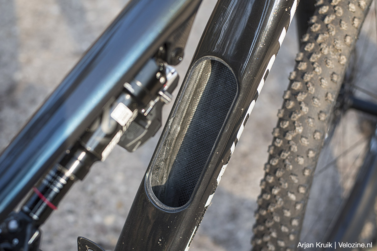 Over gewicht gesproken: het S-Works Epic 8-frame is gemaakt van Fact 12M-carbon, Specializeds lichtste carbonconstructrie. Specialized claimt dat dit frame 76 gram lichter is dan het frame van z’n voorganger: 1.795 gram bij maat S, inclusief Rockshox Sidluxe Ultimate-demper. En dat is knap, want na de Stumpjumper is nu ook de onderbuis van S-Works Epic 8 voorzien van een opbergvak. En zo’n kofferbakje is niet realiseerbaar is zonder de onderbuis extra te versterken en dús het gewicht te verhogen.