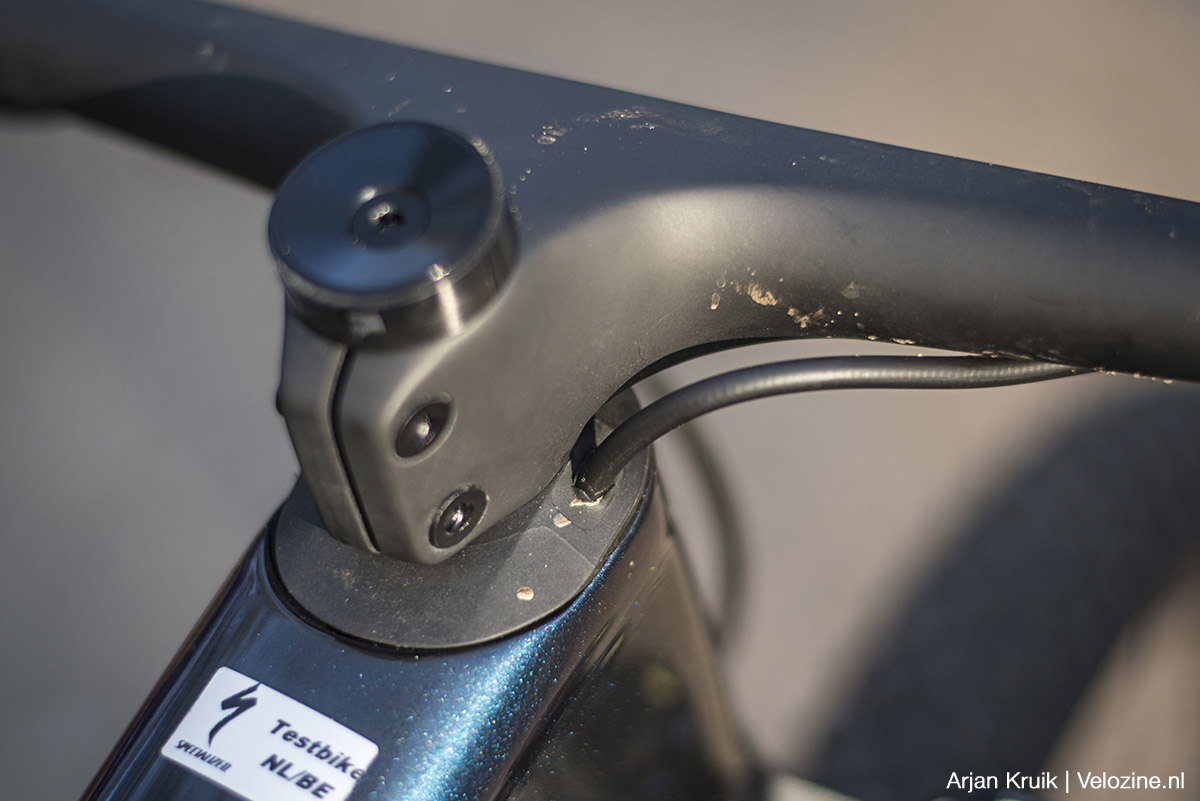 Overigens: die kabeldoorvoer via het bovenste balhoofdlager zie je uitsluitend op de S-Works Epic en niet op de modellen eronder. Dit in verband met het realiseren van een zo laag mogelijk framegewicht bij het S-Works-vlaggeschip. En hoe tegenstrijdig dat ook klinkt: een balhoofdbuis zónder gaatjes erin is lichter dan een balhoofdbuis mét gaatjes.