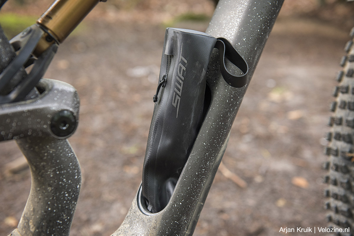 En dan zijn er natuurlijk de vele beschermers die het frame ook bij intensief gebruik netjes houden. Op de liggende achtervork, onderop de onderbuis, achter het hoofddraaipunt. De royale garantie op het frame – Specialized geeft de eerste eigenaar levenslang – biedt extra vertrouwen. Een afmaker die je letterlijk snel over het hoofd ziet, is het vernieuwde bagageluikje in de onderbuis. Deze ‘Swat 4.0’ is in vergelijking tot z’n voorganger namelijk mooier in het frame geïntegreerd en bovendien beter en sneller toegankelijk.