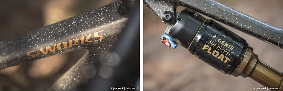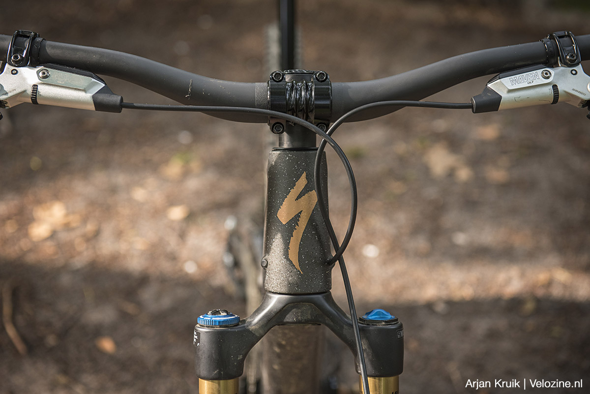 Als het gaat om het veersysteem kiest Specialized sinds jaar en dag voor de klassieke Horst-link in de liggende achtervork, waarbij de beweging van het achterwiel via een hevel wordt overgebracht op een horizontaal geplaatste demper. Nou is het toepassen van zo’n beproefde configuratie geen garantie voor goed functionerend vering, maar hey, Specialized past dit systeem al een kleine dertig jaar toe, dus ze weten wel hoe het werkt.