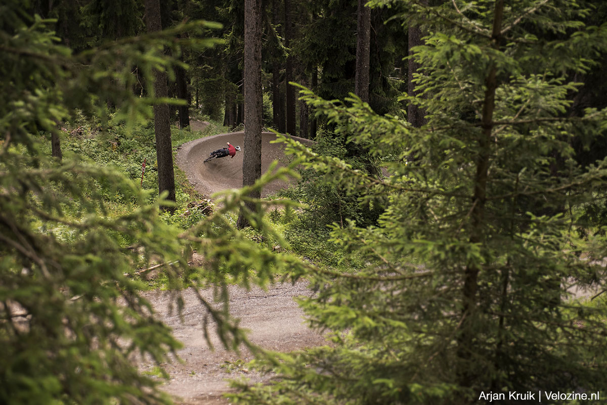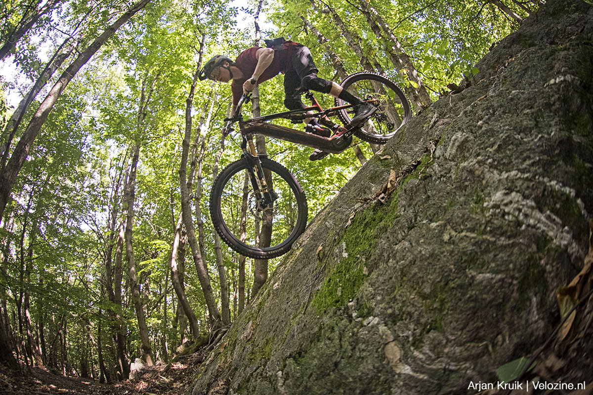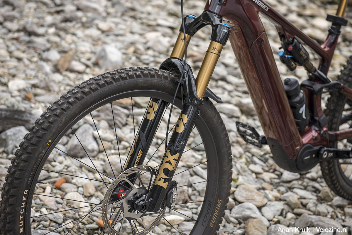 De Fox 38 aan de voorkant vertoont hetzelfde karakter. Door de lichtere afstelling van de demper voelt deze vork soepeler aan dan Fox 38’s die ik eerder heb gereden. Samen vormen vork en demper een goed op elkaar ingespeeld koppel. In combinatie met de kleverige Butcher T9-banden en de superkrachtige remmen liggen de grenzen van waartoe deze bike in staat is ver buiten mijn comfortzone.