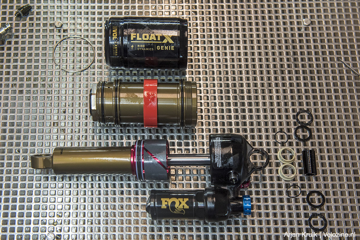 De truc van de Genie-demper zit in het laatste derde deel van de slag. Een brede, boven de zuiger geplaatste kunststof glijbus, door Specialized Genie-band genoemd, sluit op twee derde van de ingaande slag de externe luchtkamer af van de interne luchtkamer, waardoor het beschikbare volume afneemt. Oftewel: de luchtdruk neemt vanaf dat punt flink toe, waardoor de vering zich verhard en effectief voorkomen wordt dat de vering op het eind van de veerweg doorslaat. Deze vinding is de reden dat Specialized het beste van twee werelden durft te claimen: soepel aanspreken aan het begin van de slag en optimale ondersteuning aan het eind.