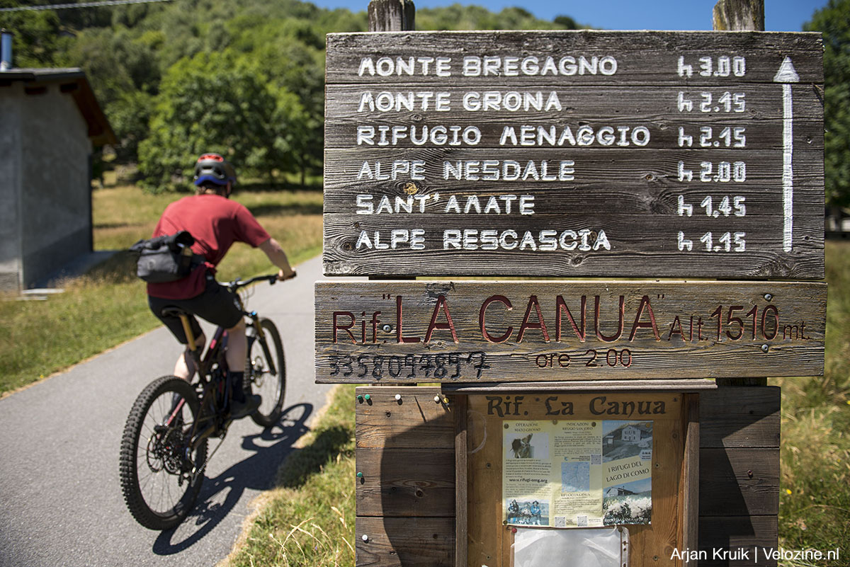 Vanwege de steile zitbuishoek is de zithouding, zoals op de veel moderne e-mountainbikes van dit kaliber, redelijk compact en rechtop. Die steile hoek plaatst het zadel meer boven de trapas, wat in steile beklimmingen een voordeel is. Maar in vlakke passages zit je daardoor nét even te veel boven de trapas om nog optimaal te kunnen trappen. Maar dat is wat mij betreft wat het is, want rond het Comomeer heb je feitelijk maar twee richtingen: steil omhoog en steil omlaag. Om die reden heb ik ook het stapeltje vulringen onder de stuurpen laten zitten. Ja, een lager stuur geeft in beklimmingen meer druk op het voorwiel. Maar als je boven bent moet je ook weer omlaag. En dan geeft zo’n hoog geplaatst stuur meer controle en vertrouwen.