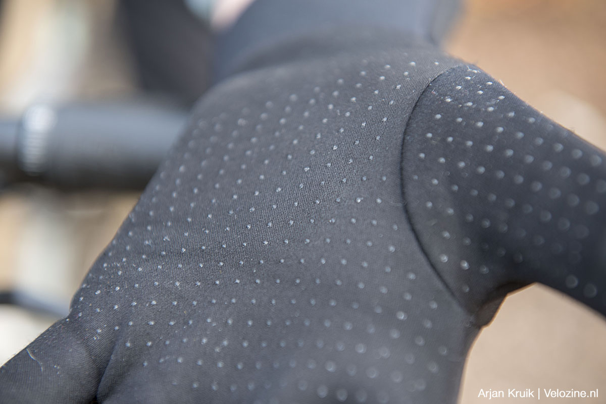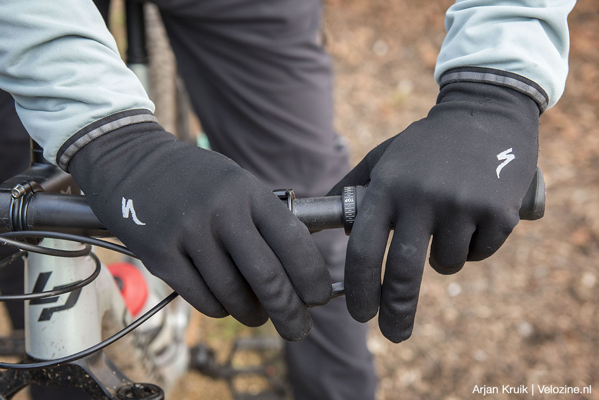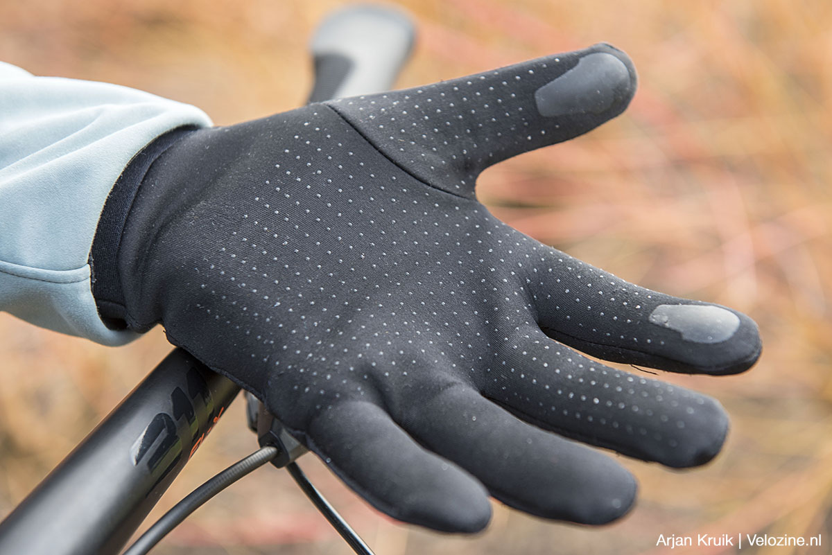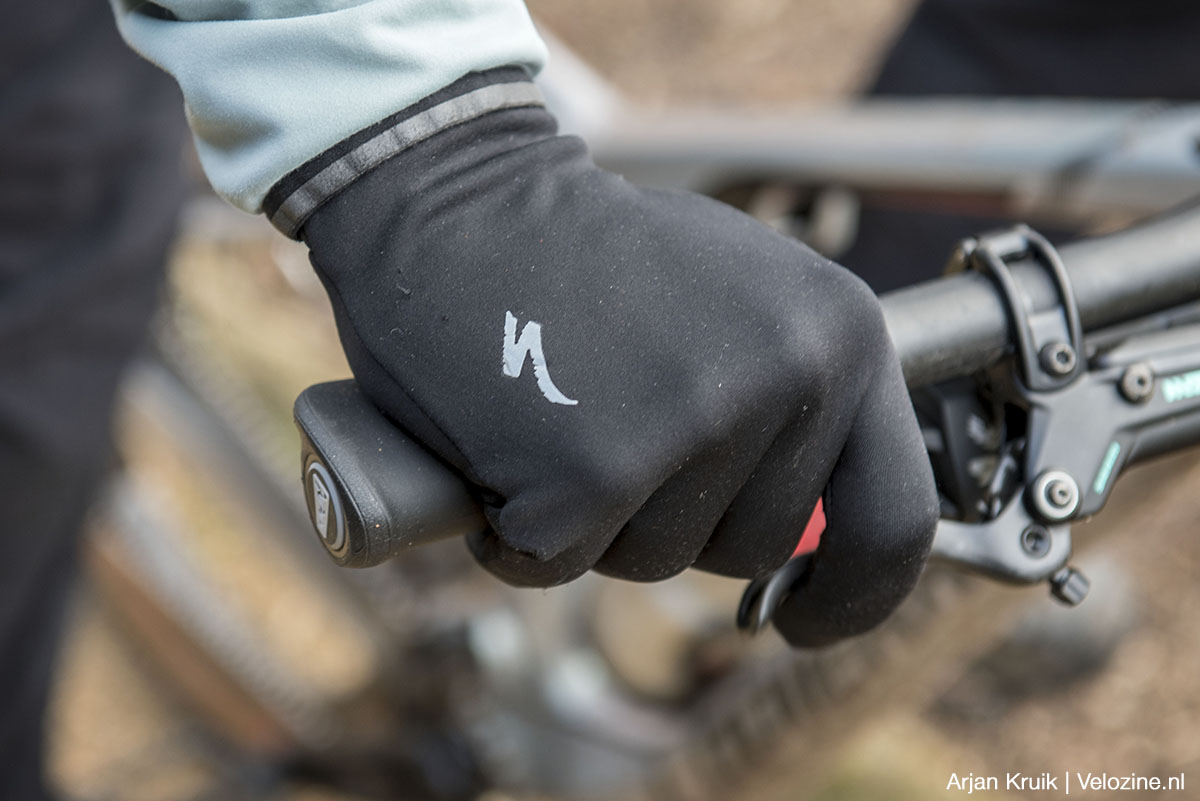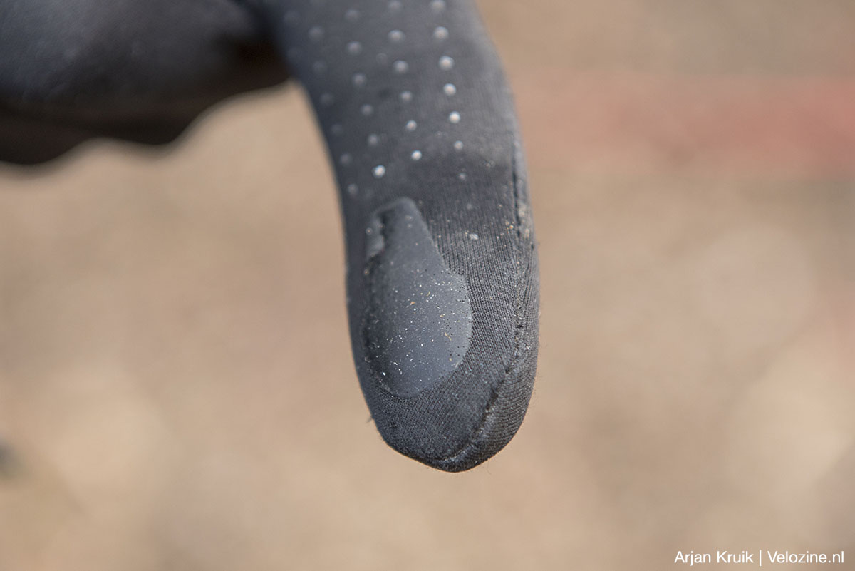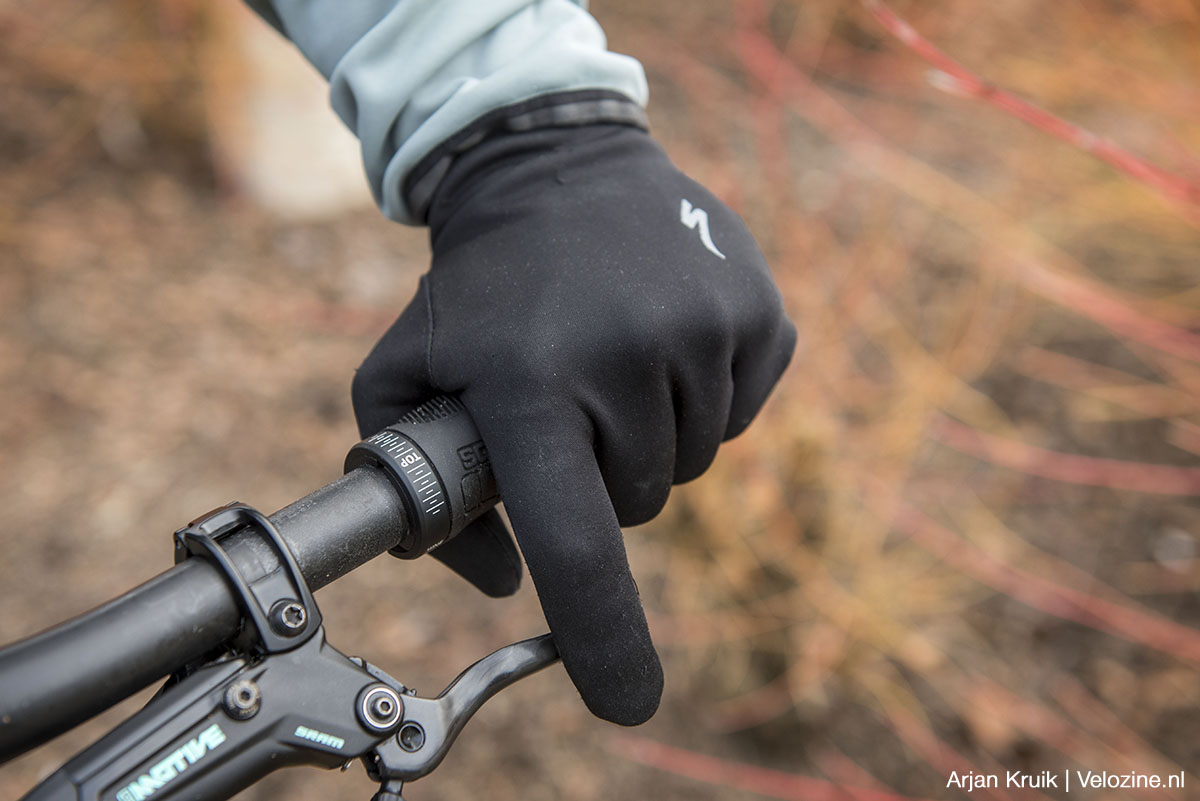 De pasvorm is goed, met wellicht een iets te krappe duim. Maar dat laatste heb ik bij vrijwel álle handschoenen, dus dat ligt vooral aan mijn genen en niet aan Specialized. Met de speciale siliconenapplicaties op de duim en wijsvinger laat het scherm van m’n telefoon zich goed bedienen. Beetje jammer: die applicaties zijn niet heel erg slijtvast. Dat geldt overigens ook voor de handschoenen als geheel; het softshell-materiaal is niet supersterk, dus je moet er een beetje behoedzaam mee omgaan.