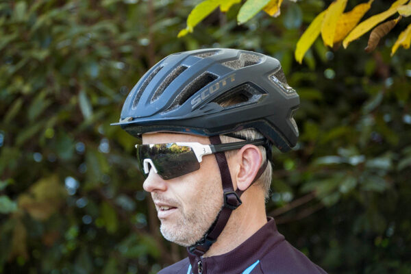 Dat komt deels ook door de prettige pasvorm, wat mij betreft iets dat voor alle Specialized-helmen geldt die ik tot nu toe gedragen heb. De kunststof bandjes van het fixatiesysteem binnenin omspannen het gehéle hoofd, zodat de helm lekker stevig zit zonder dat er drukpunten onstaan. De nieuwe Tactic voelt overigens wel alsof-ie iets minder goed op je hoofd is gefixeerd dan de het vorige model Tactic, die ik toevalligerwijs ook hele veel gedragen heb. Het verschil is niet het fixatiesysteem, maar de Mips-liner. Omdat die extra tussenschaal, waaraan de kussentjes vast zitten, en de buitenschaal zeer gemakkelijk ten opzichte van elkaar kunnen bewegen, voélt het alsof de helm niet strak op het hoofd zit, terwijl dat wel zo is.