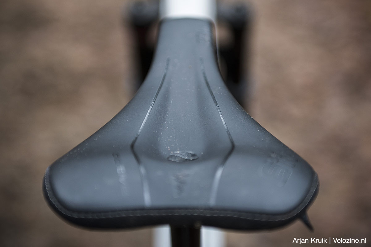 Dan het comfort, dat nogmaals naar een hoger plan getild zou zijn. Hoe zit het daar mee? Dat zit goed, letterlijk. Het getrapte langsprofiel is meer geprononceerd dan bij de oude 611, het kuiltje in het midden is dieper en de neus is platter en minder grof. Het resultaat is inderdaad een verbetering van het zitcomfort ten opzichte van de oude 611. Niet mindblowing beter – de oude 611 vind ik namelijk ook ronduit lekker zitten – maar met name tijdens lange ritten is het comfort inderdaad een graadje beter. Vooral het diepere kuiltje in het midden lijkt erg goed te werken; er is echt geen enkele druk op de edele delen.