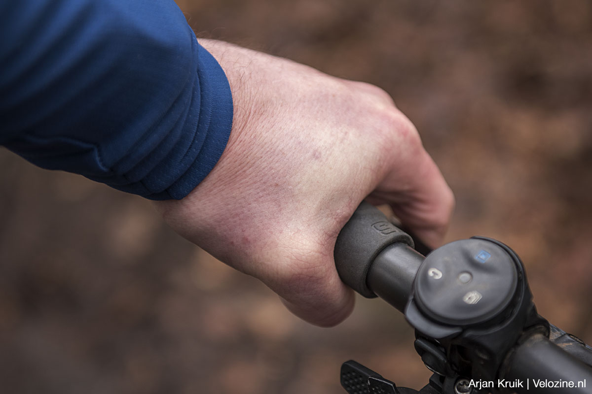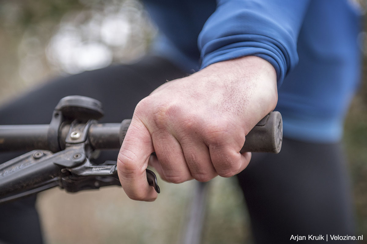 Aangezien ik al sinds jaar en dag met ESI’s rij, moet ik in eerste instantie even wennen aan de 711 R’s van SQlab. Niet alleen aan de veel meer geprononceerde vorm, maar ook aan het iets hardere materiaal. Maar al tijdens m’n eerst rit komt de waardering voor deze Duitse handvatten. De vorm is zodanig dat ze hele erg makkelijk vasthouden. Vooral het effect van de richel aan de onderkant is heel duidelijk. Ik heb de indruk dat ik minder hard hoeft te knijpen om houvast te krijgen. Maar ook de demping staat op een hoger niveau. Het siliconenmateriaal van SQlab heeft een wat grotere dichtheid, waardoor m’n handen er minder ver in wegzakken. Als je van ESI’s komt voelt dat in eerste instantie wat harder aan, maar op de lange duur is het uiteindelijk comfortabeler.