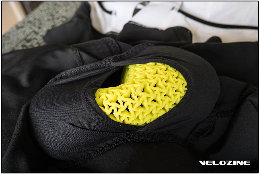 In de zeem zit — tussen buitenkant en de schuimlaag die in contact staat met je lichaam — een dunne laag orthopedische TPE-gel. Deze gel wordt bijvoorbeeld óók gebruikt in protheses om schurende bewegingen te neutraliseren. Het doel hiervan is dat het schuim waar jij op zit wat heen en weer kan schuiven ten opzichte van de buitenkant van de broek, zo jouw bewegingen kan volgen, en dus niet gaat schuiven en schuren ten opzichte van je achterwerk. Eigenlijk precies wat MIPS probeert te doen: De helm laten draaien en schuiven ten opzichte van je hoofd, zodat je hoofd dus niet meedraait. Maar dan in je broek… Misschien is de vergelijking met het SPIN-systeem van POC overigens nog wat logischer: Dat maakt letterlijk óók gebruik van kussens met gel erin om een MIPS-achtige bescherming te bieden. In het geval deze broek is de ‘bescherming’ er niet voor valpartijen, maar tegen discomfort.