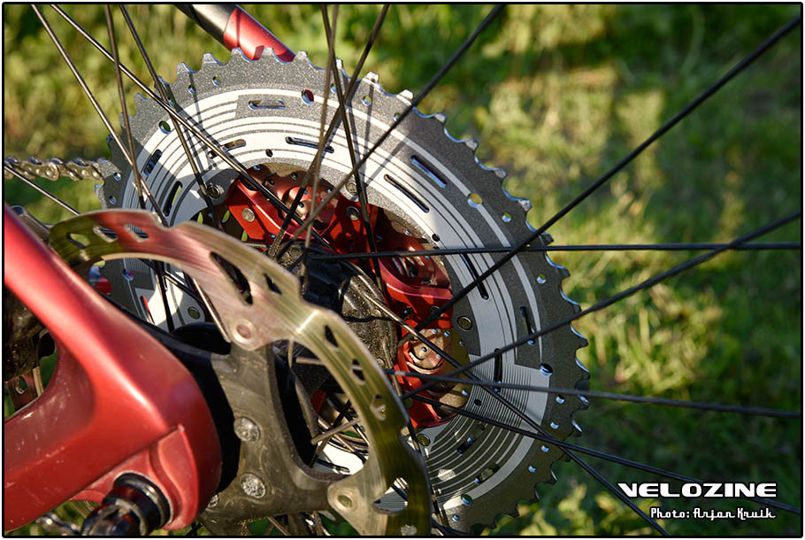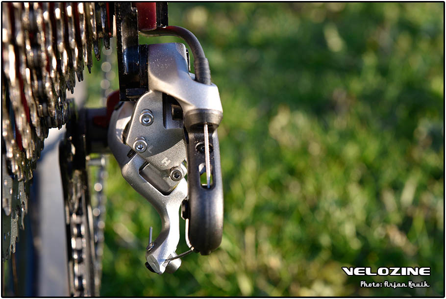 Dat geldt ook voor het geluid; de SunRace-ketting lijkt wat meer moeite te hebben met de schuine kettinglijn in het lichtste verzet. Maar behalve een akoestische oprisping lijkt dit verder geen consequenties te hebben. Ook bij achteruit trappen loopt de ketting er niet af, zelfs niet in de uiterste standen. En dat is best een prestatie; Shimano en Sram hebben dat trucje ook nog niet zolang onder de knie namelijk.