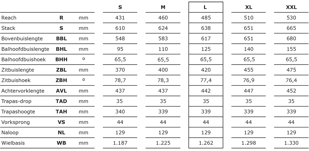 | Gewicht compleet | 20,75 kg (framemaat L) |