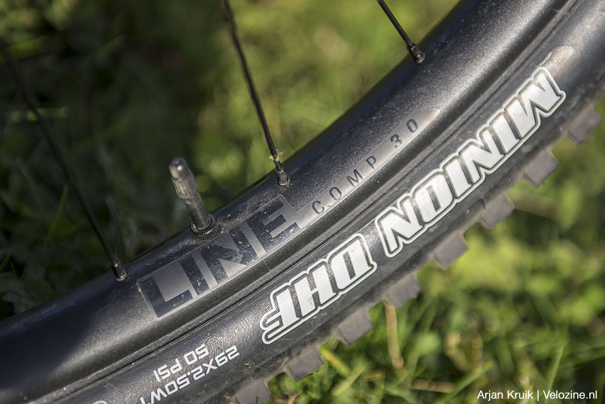 Met de aluminium Bontrager Line Comp 30-wielen op de Fuel+ EX hadden we al goede ervaringen en nu stellen ze wederom niet teleur. Met als bonus de hoogwaardige banden van Maxxis. Vooraan een Minion DHF 2.5 met de gripvast Maxgrip-compound, aan de achterkant een Minion DHR 2.5 met het snellere Maxterra-rubber. Beide banden hebben een Exo+-karkas. Dat is niet het sterkste karkas dat Maxxis in huis heeft, dus om stootlek te voorkomen kan voor zware rijders een upgrade naar Maxxis’ dikkere Double Down-karkas lonend zijn, met name achteraan. Fijn: de banden worden door Trek af fabriek tubeless geleverd.